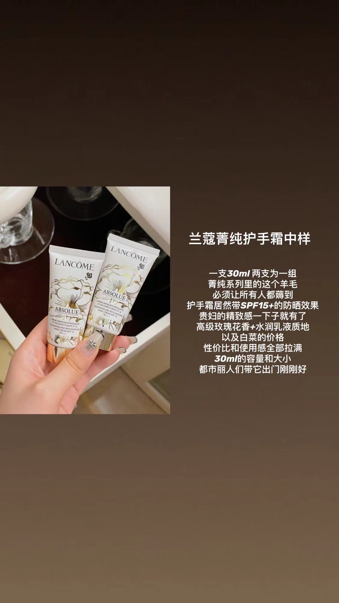 下单备注 兰蔻菁纯护手霜中样