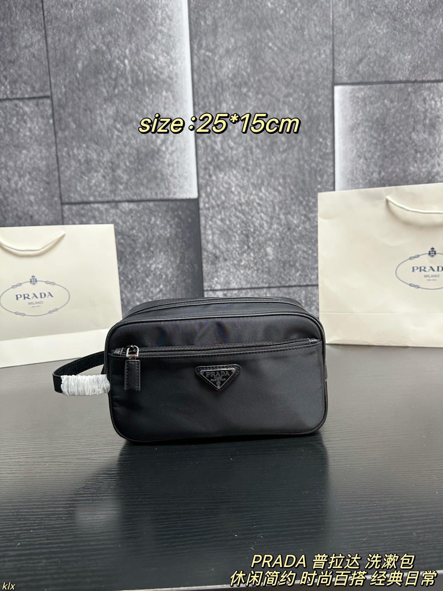 PRADA洗漱包 黑金黑银 421875