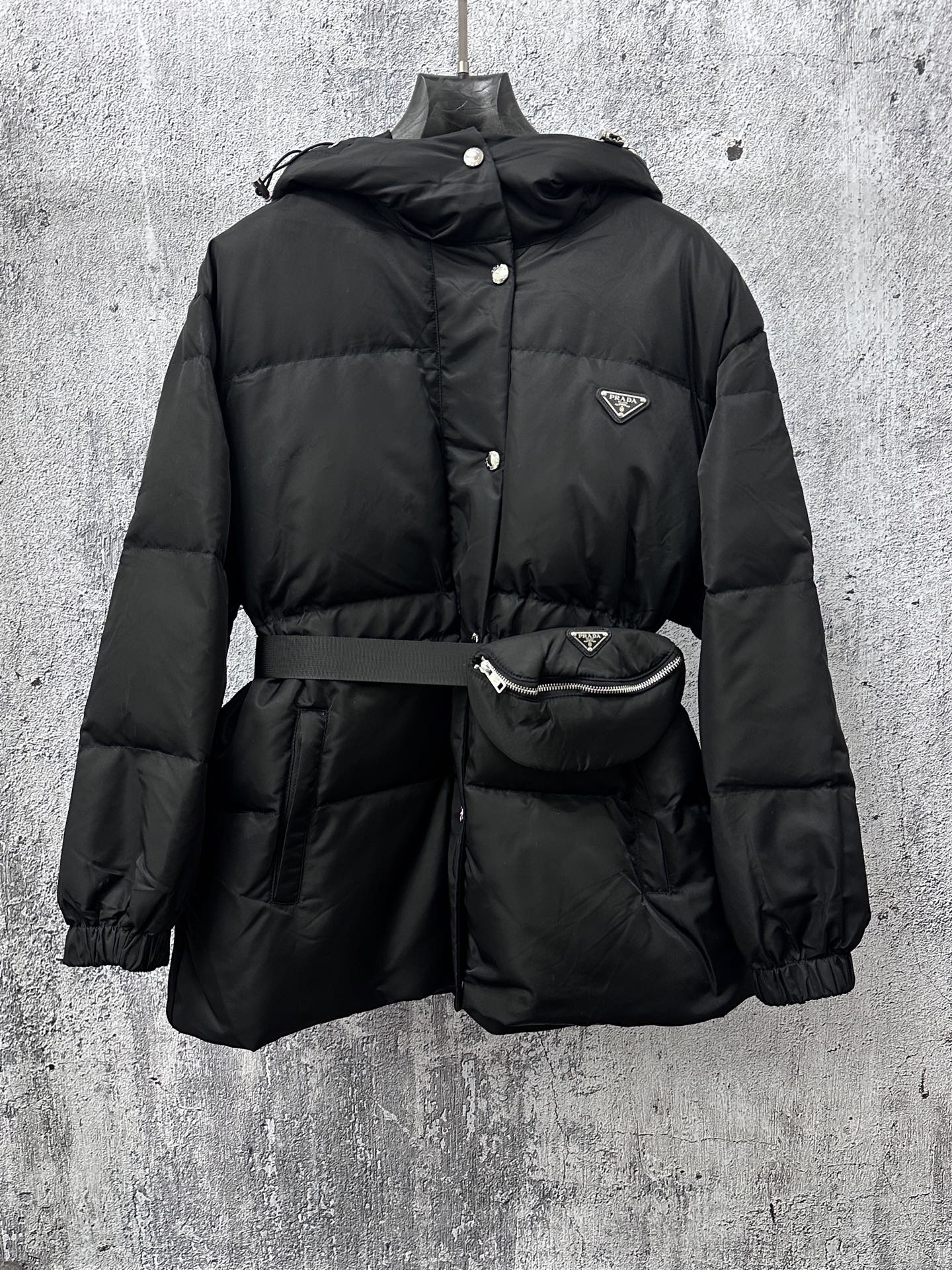 Prada 普拉达2025秋冬新款 蚂蚁腰显瘦连帽羽绒服