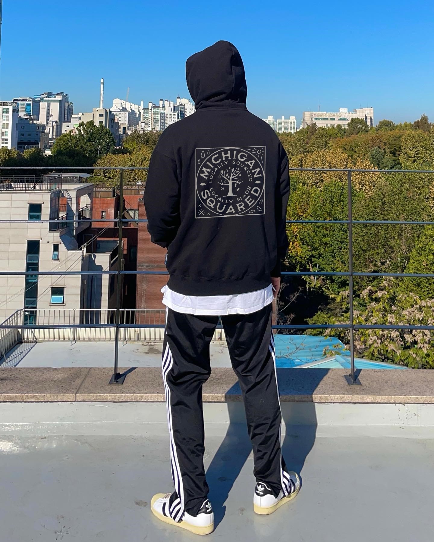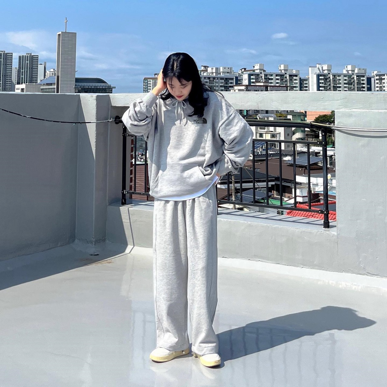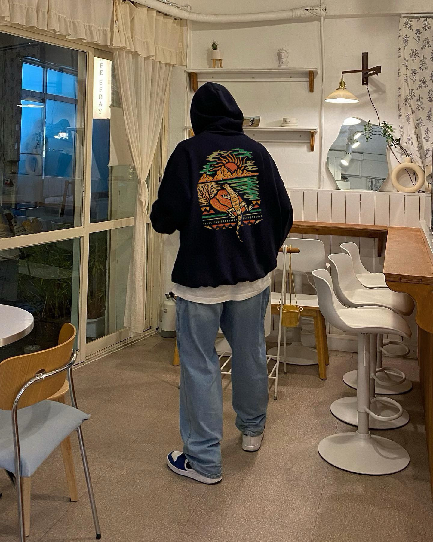 TNF 北面s手绘椰树沙滩情侣加绒连帽卫衣
