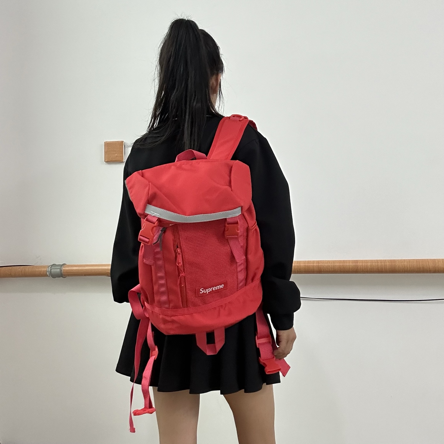 元 Supreme 双肩包高版本 3M十字反光条 户外背包 344840