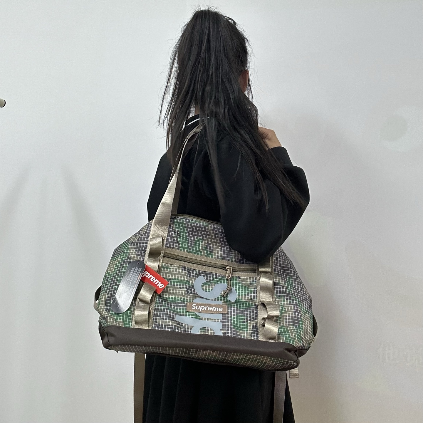 元 Supreme 单肩包 SUP字母单肩包托特包斜挎包格子 344822