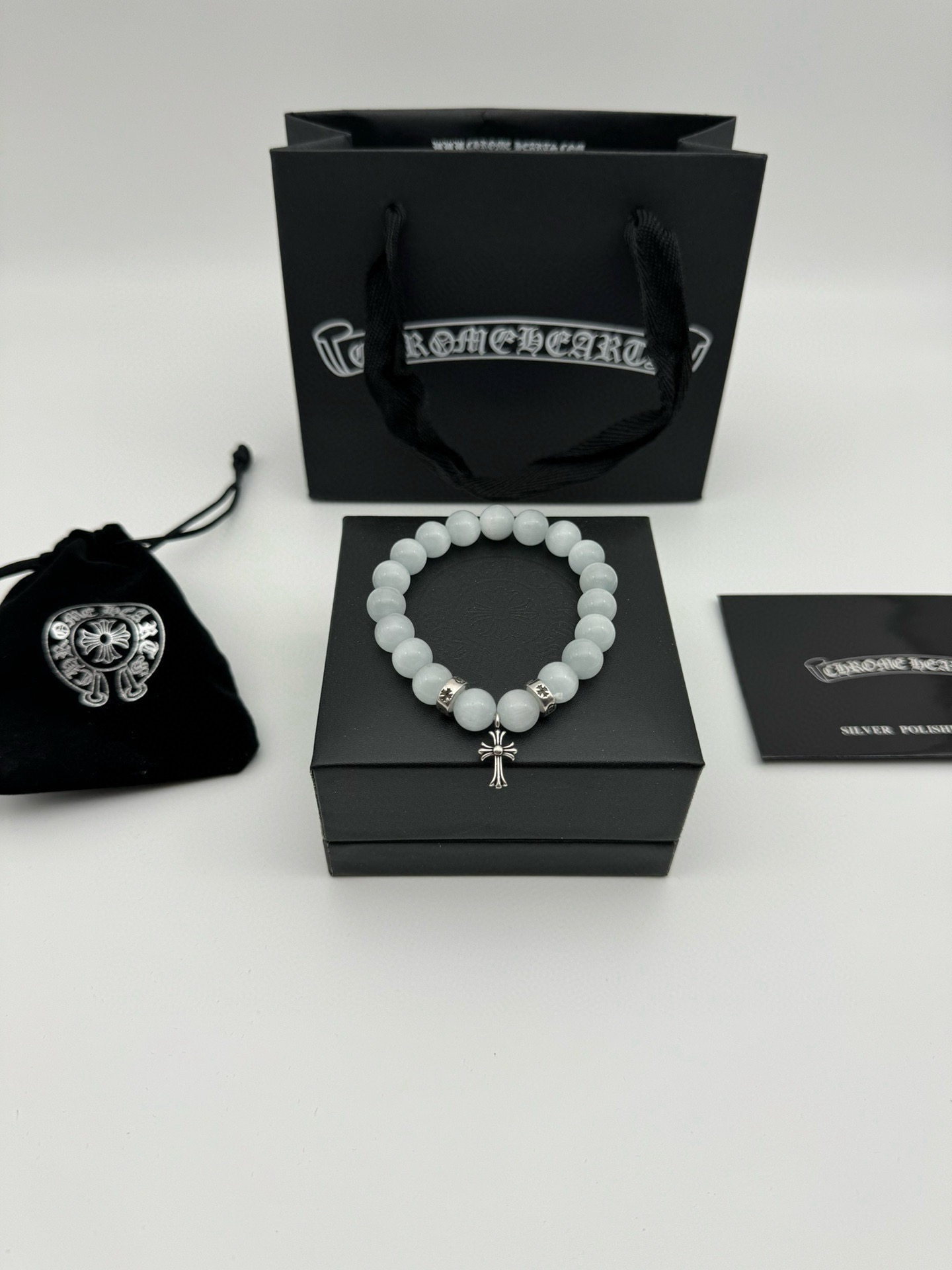 三珠 Chrome hearts克罗心白色猫眼石泰银手链