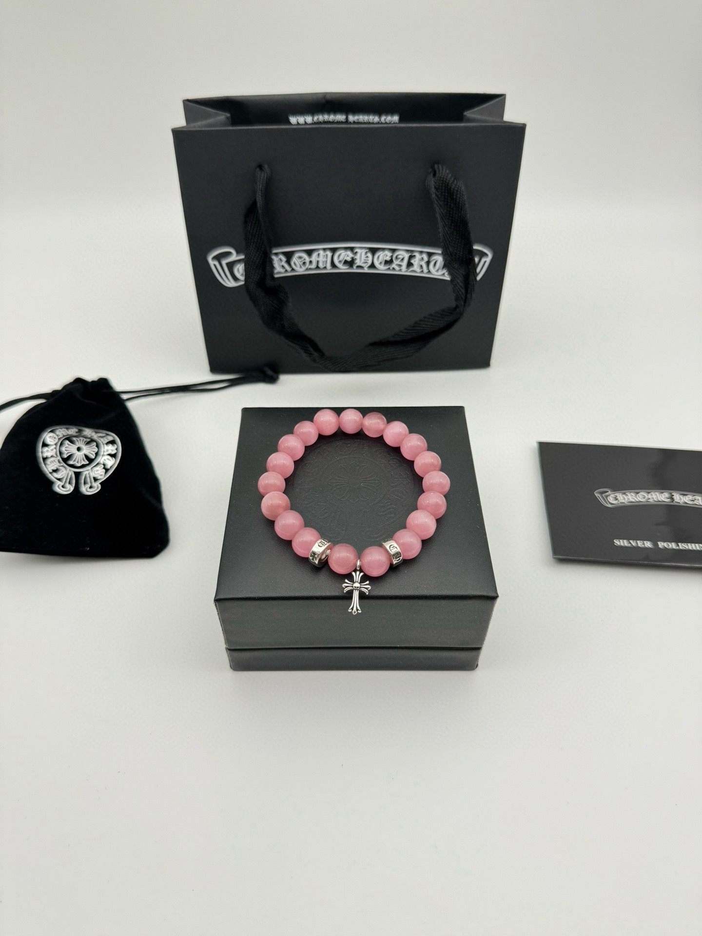 三珠 Chrome hearts克罗心粉色猫眼石泰银手链
