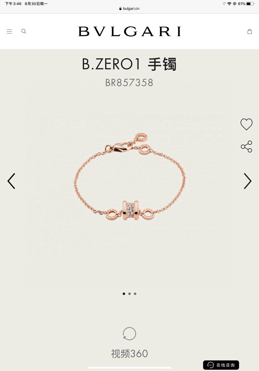 只有玫瑰金 BVLGARI宝格丽满钻小蛮腰手链