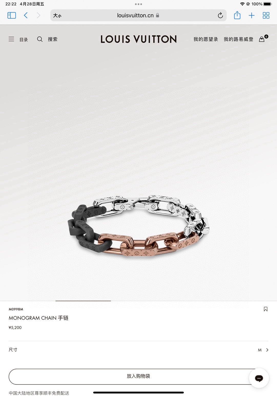 LV路易威登古巴金手链 情侣款代购版本 对版专柜 全套包装 547025
