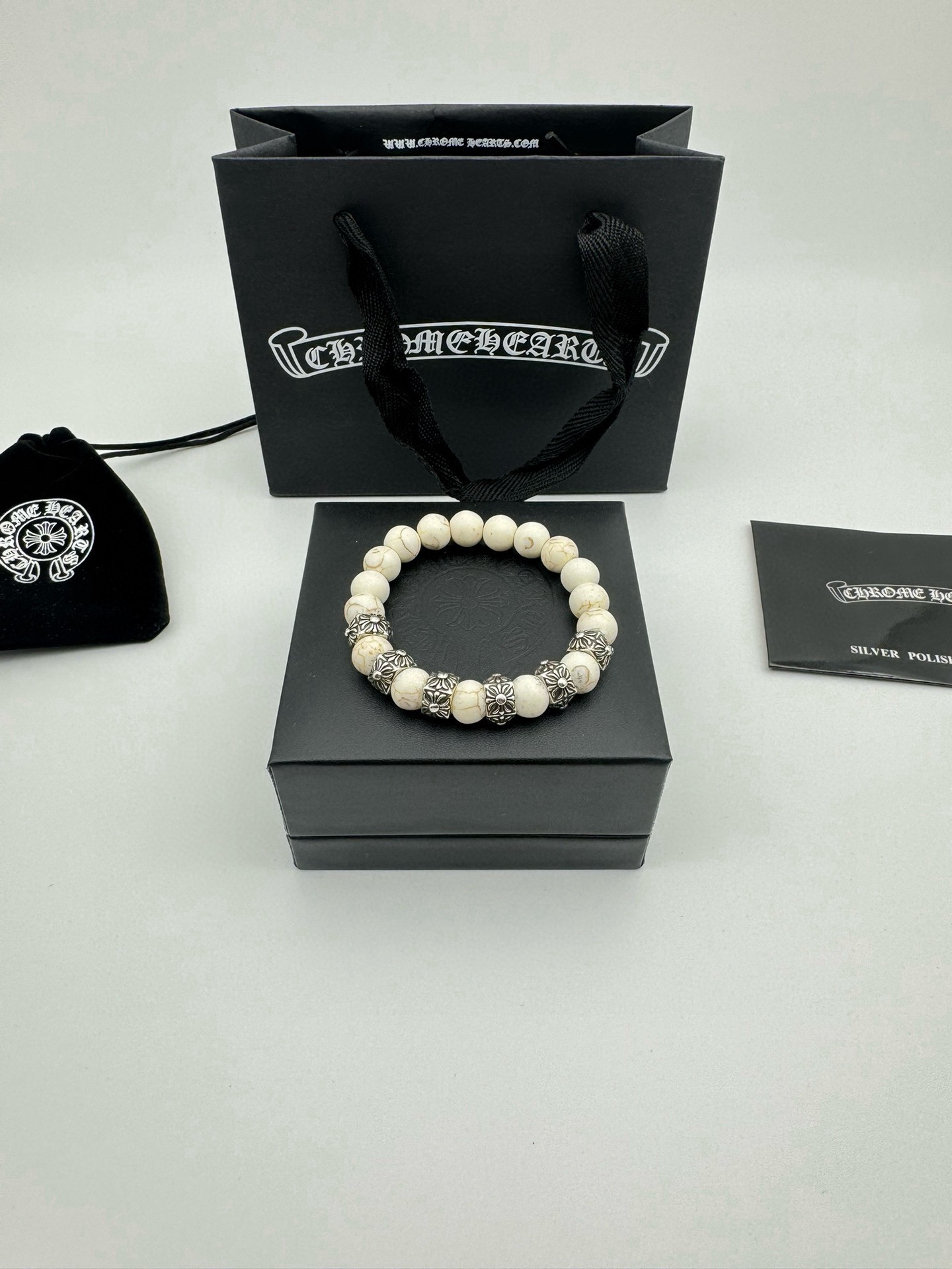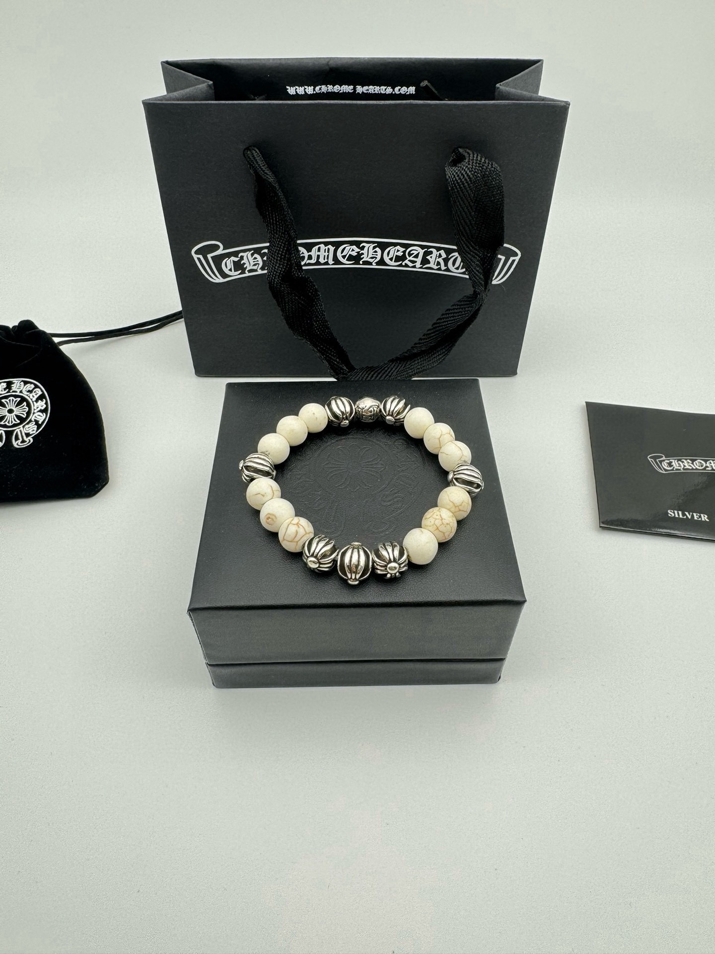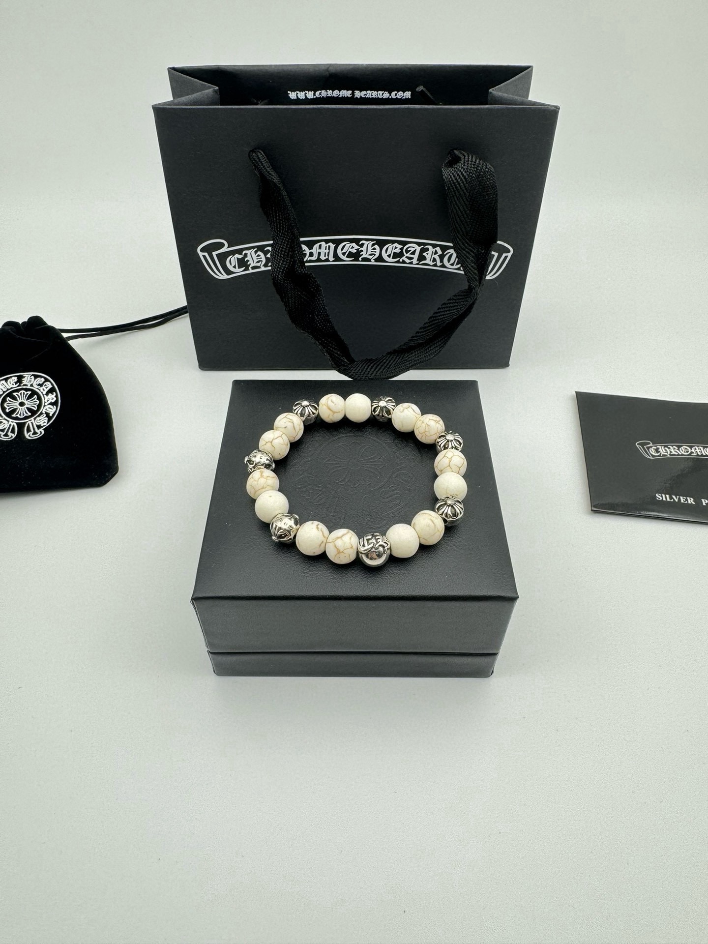 五珠 Chrome hearts克罗心白松石泰银手链