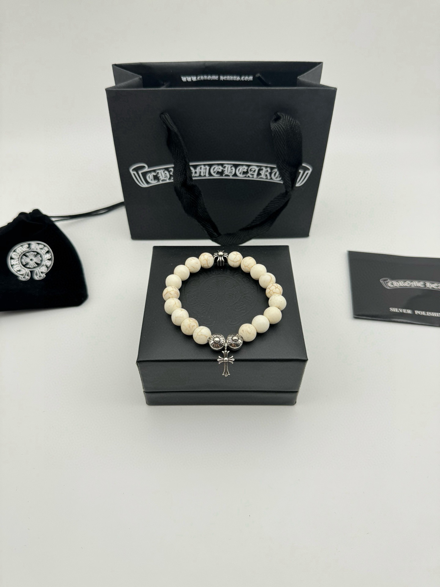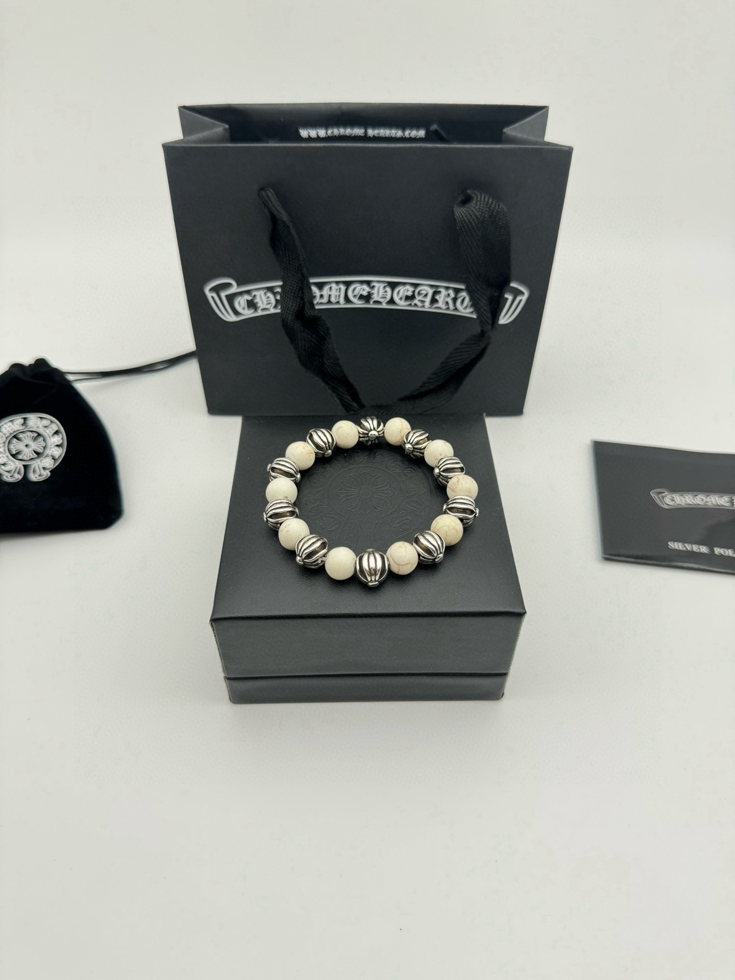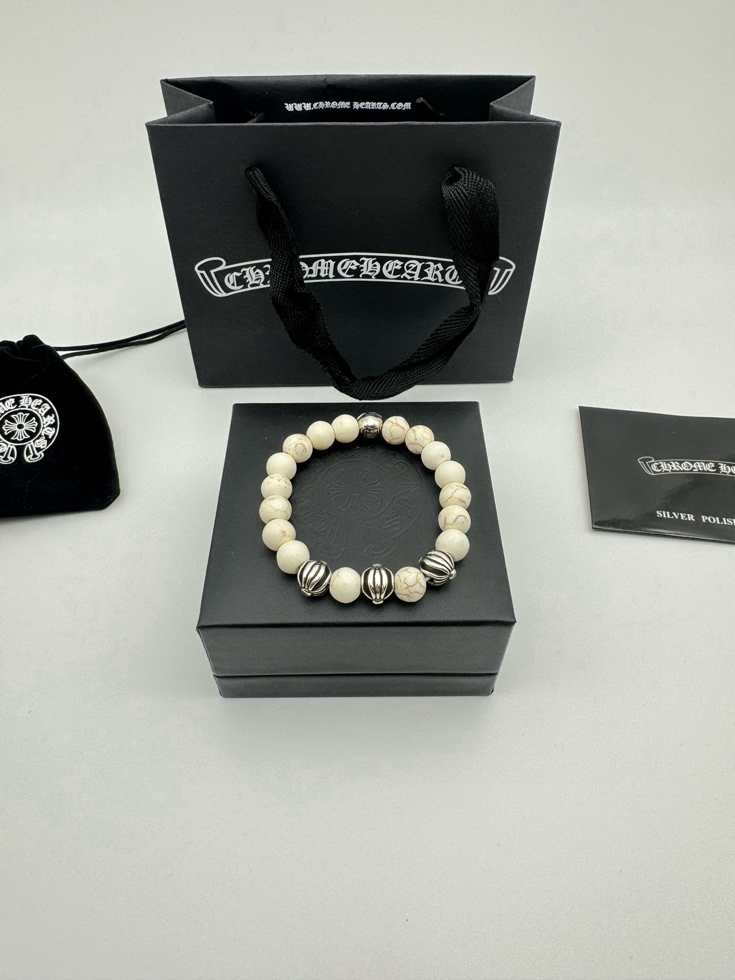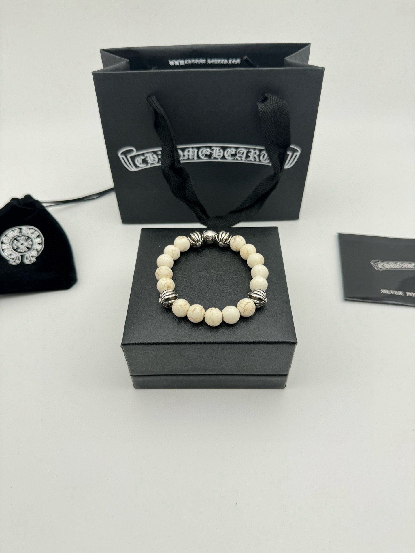 五珠 Chrome hearts克罗心白松石泰银手链