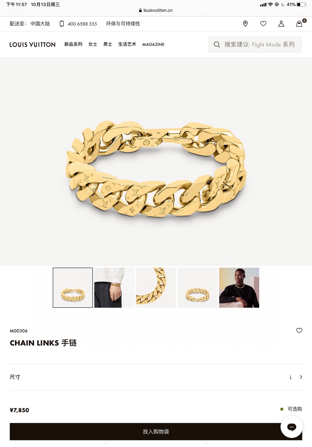 LV路易威登磁扣钢手链 男子汉必备
