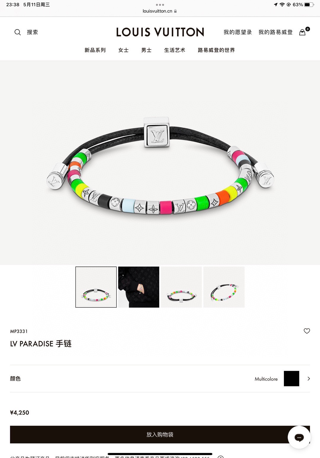 LV Paradise 手链依托细 547134