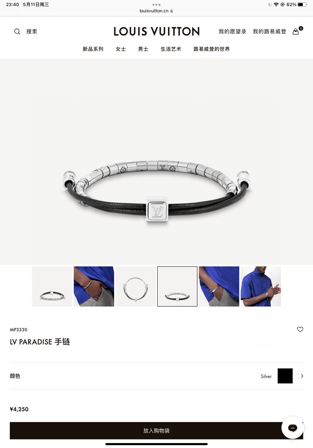 LV路易威登银色串珠手链