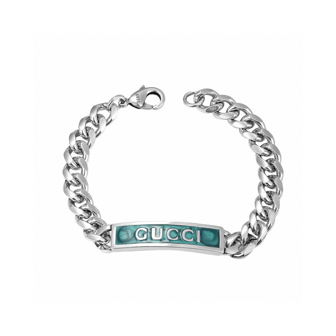 Gucci古驰蓝色标识珐琅手链 泰银版本