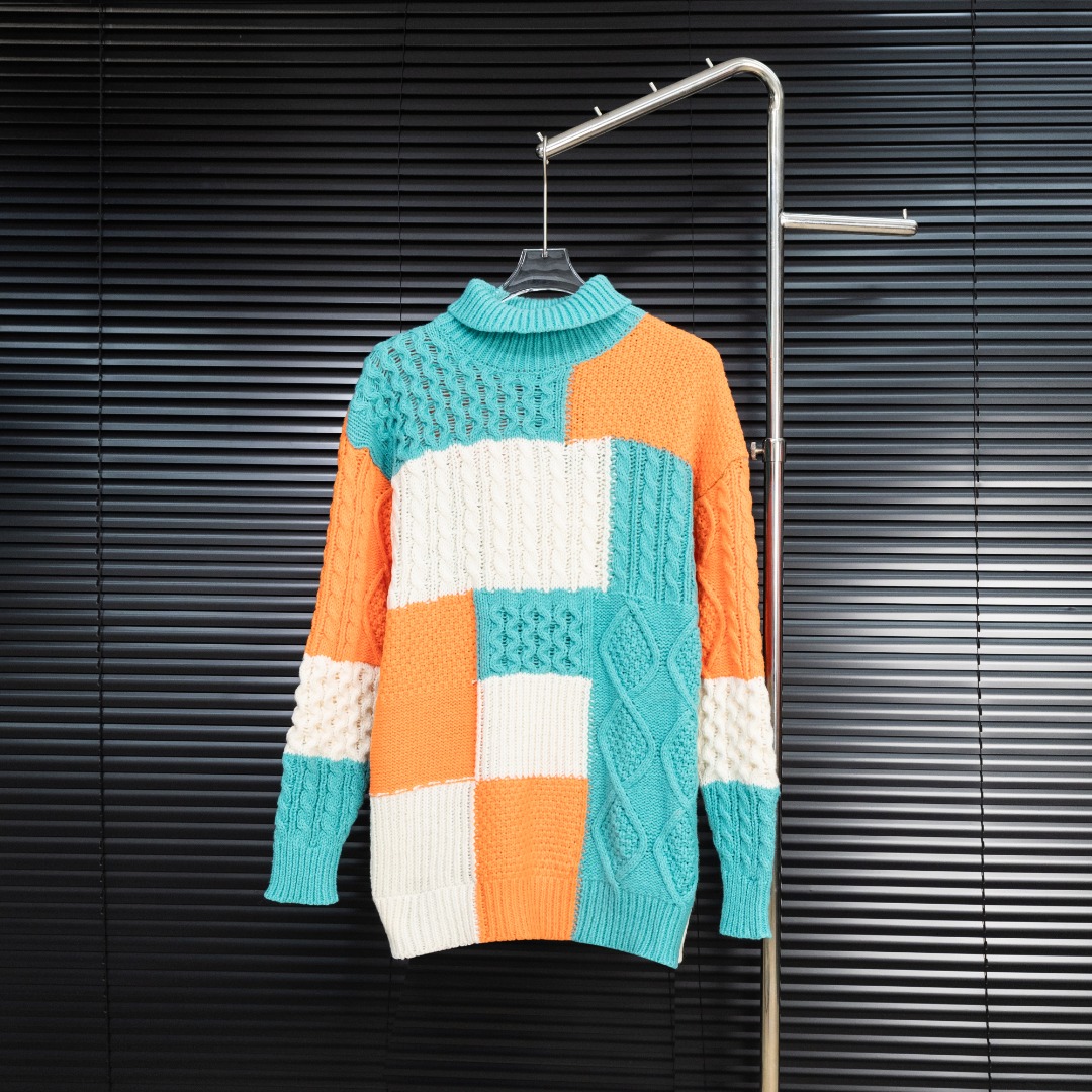 款式 罗意威LOEWE拼接不规则图形针织毛衣