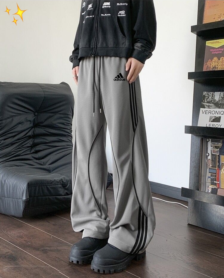 Adidas 阿迪达斯2025条纹织带撞色休闲裤拼色宽松阔腿 391821