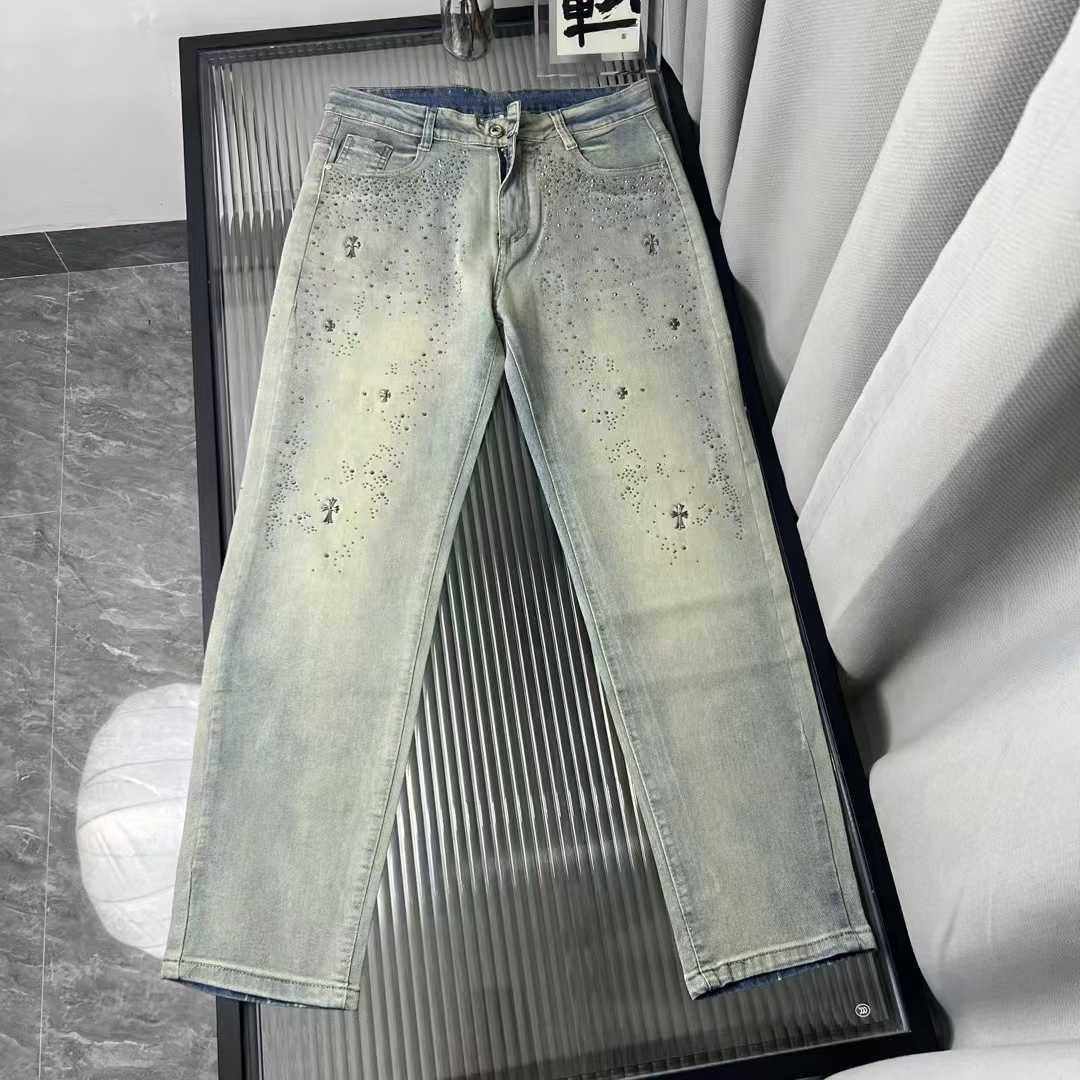 爆款克罗心泥黄烫钻牛仔裤 源头工厂 码数28 36 392865