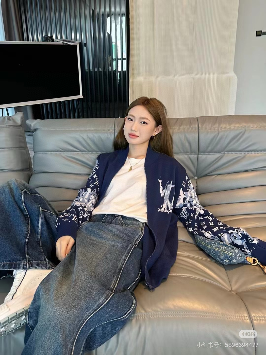 LV路易威登秋冬新款兔八哥经典混合皮革棒球服