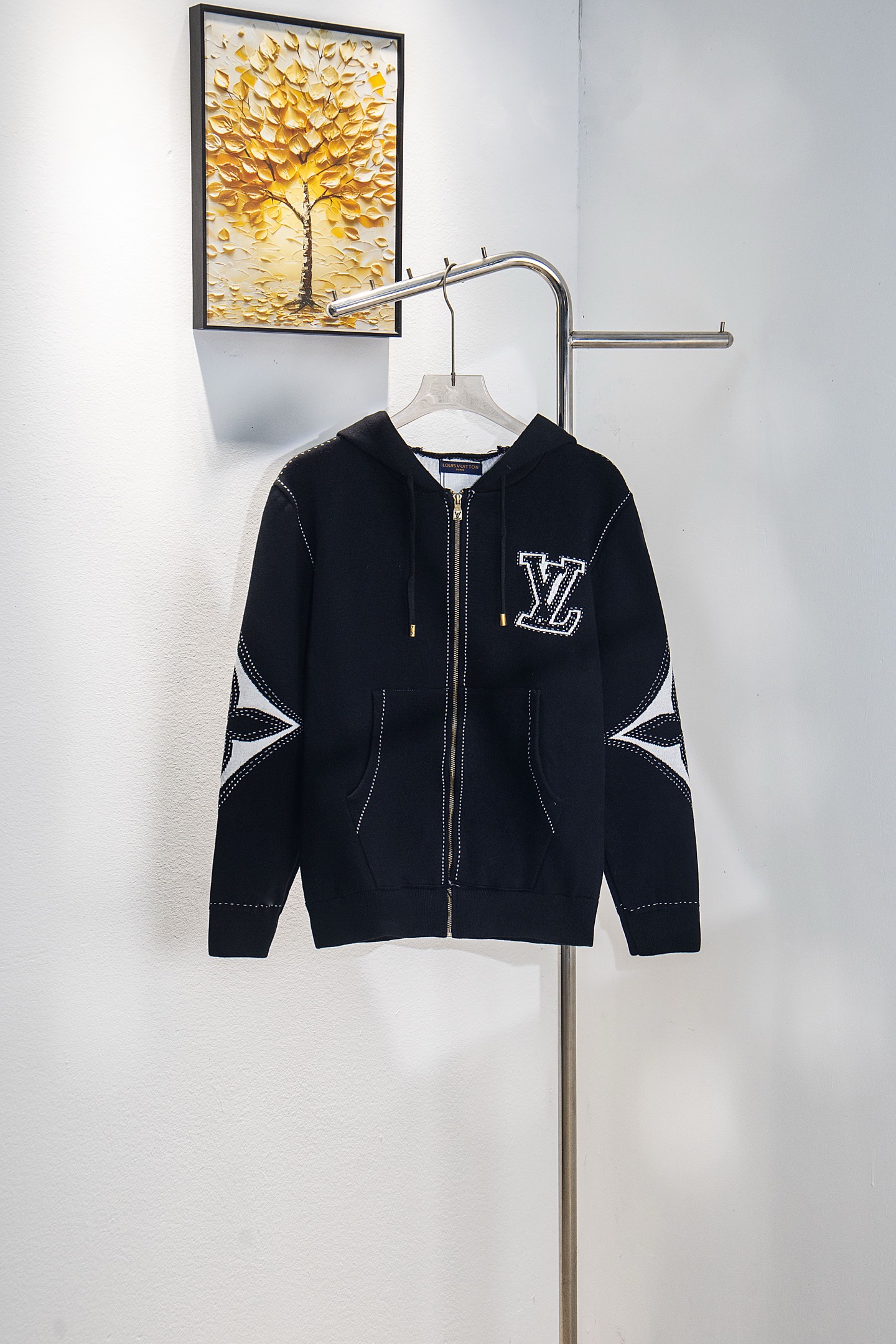 LV路易威登重工拼花袖重磅羊毛针织拉链外套