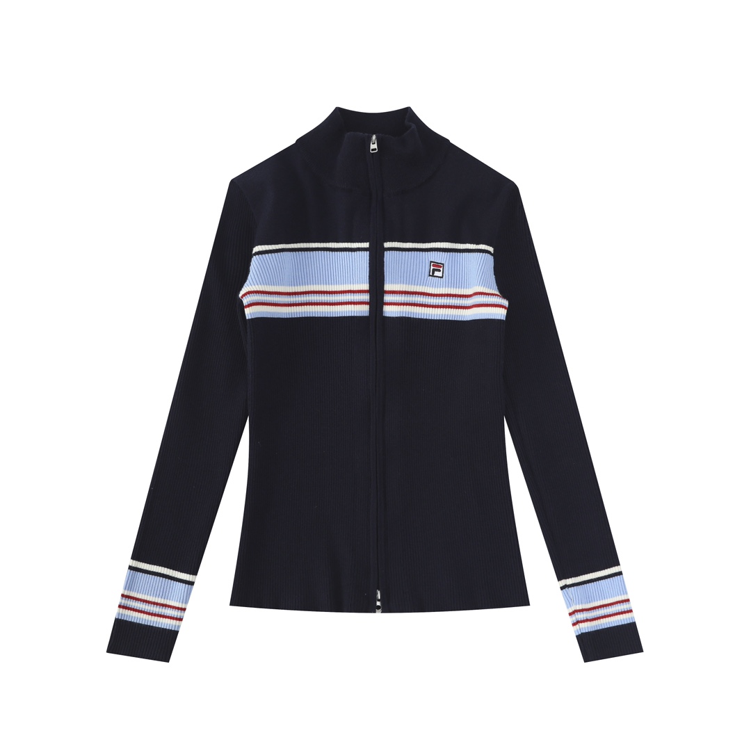 2025秋冬季新款FL女子修身拼色拉链开衫外套编织衫毛衣