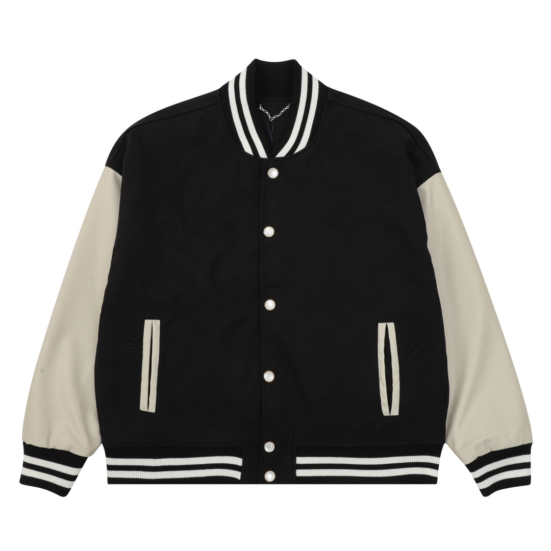 1V 路易 SS26 压花满印拼皮棒球夹克外套