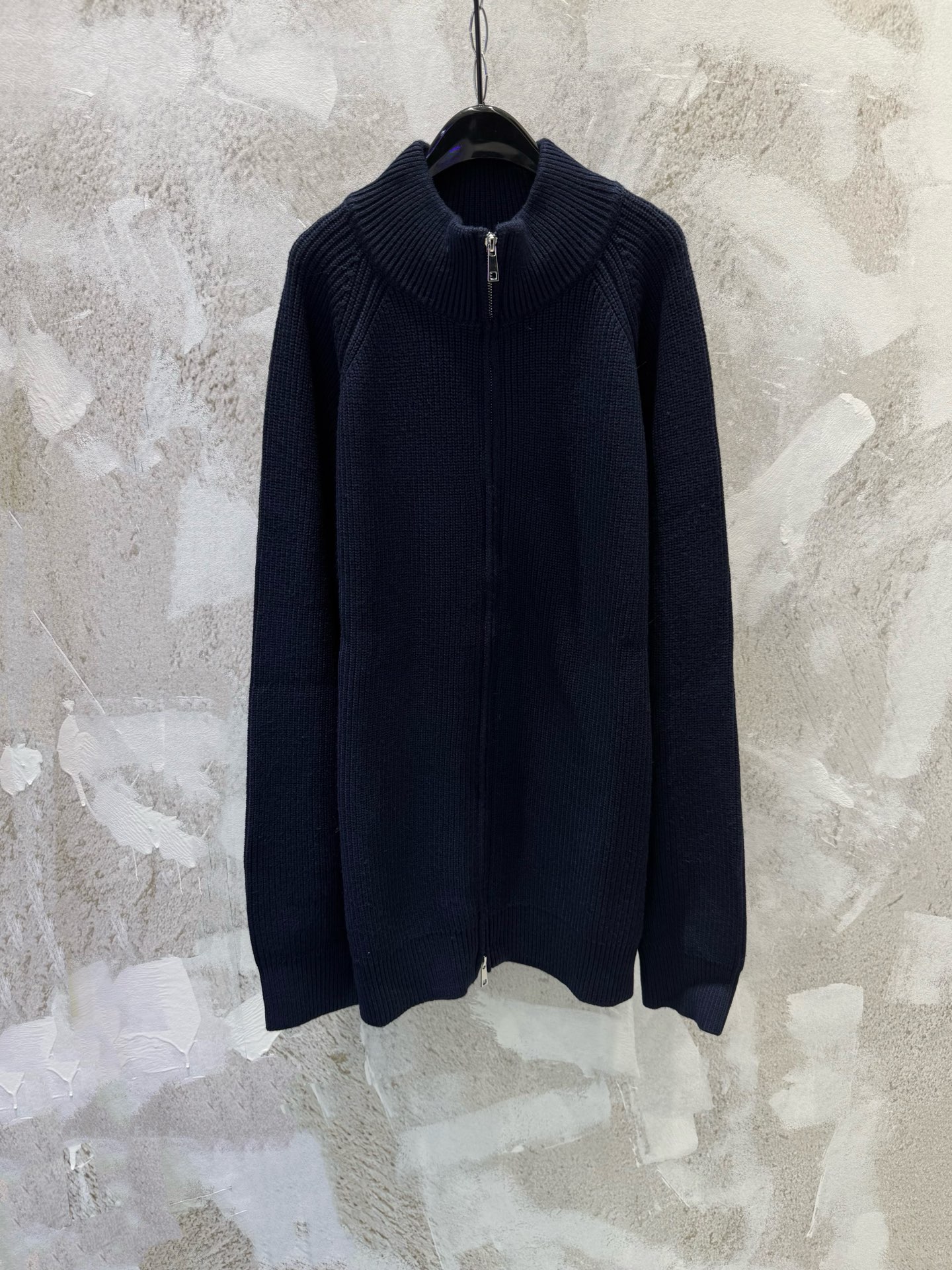 V高品质彩色格纹衣领贴饰针织拉链飞行夹克外套