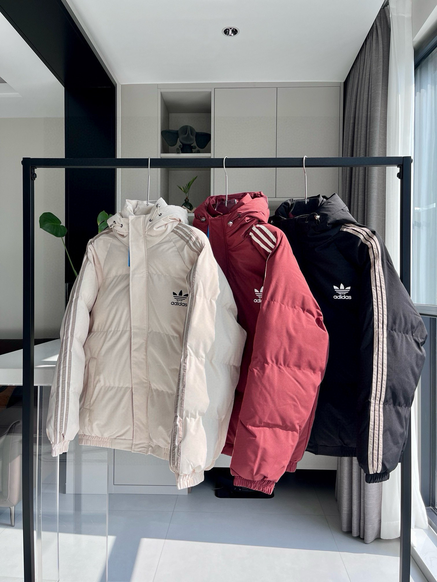 阿迪三杠经典棉服