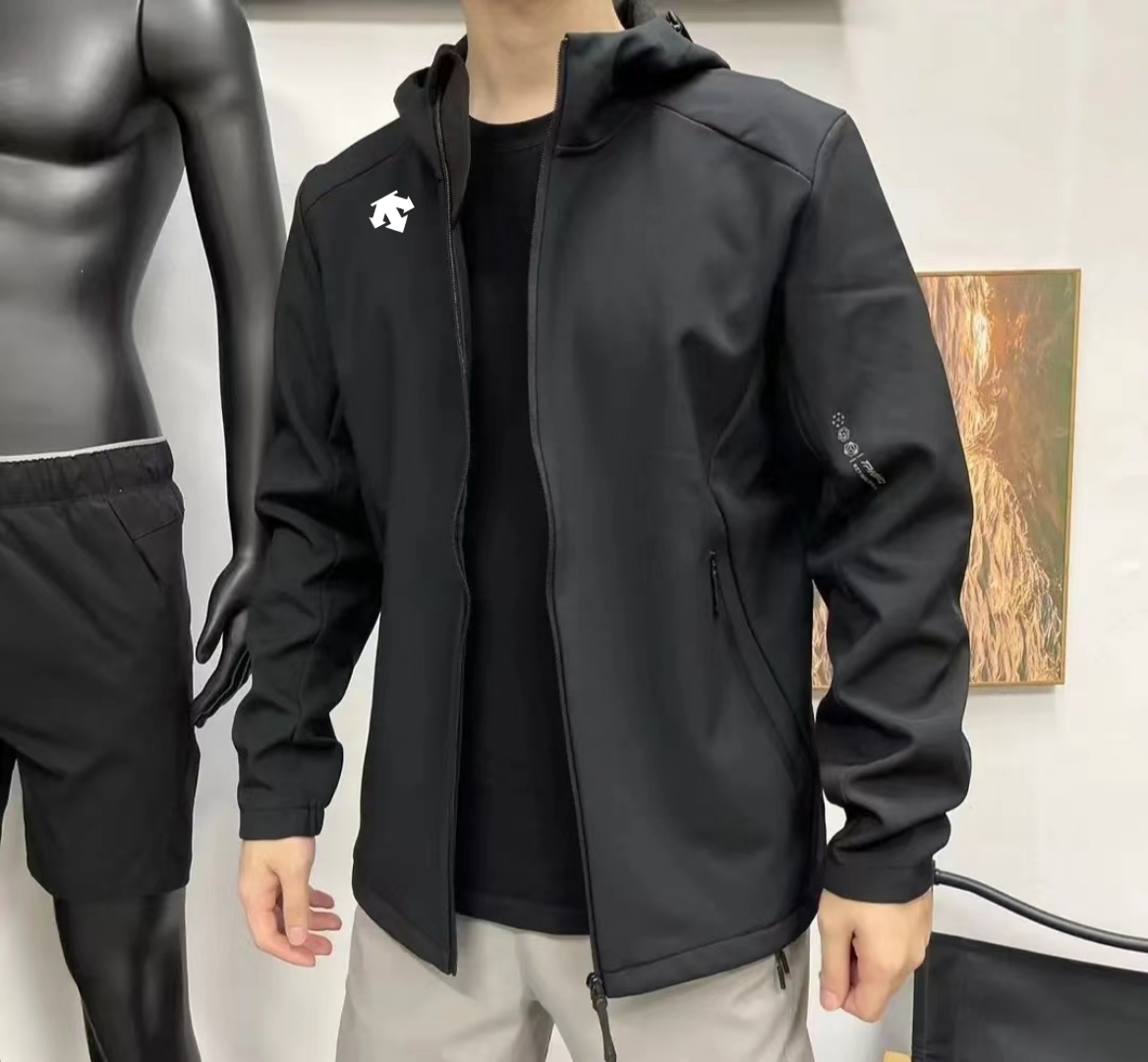 DESCENTE迪桑特连帽软壳冲锋衣防泼水微绒夹克外套 322078