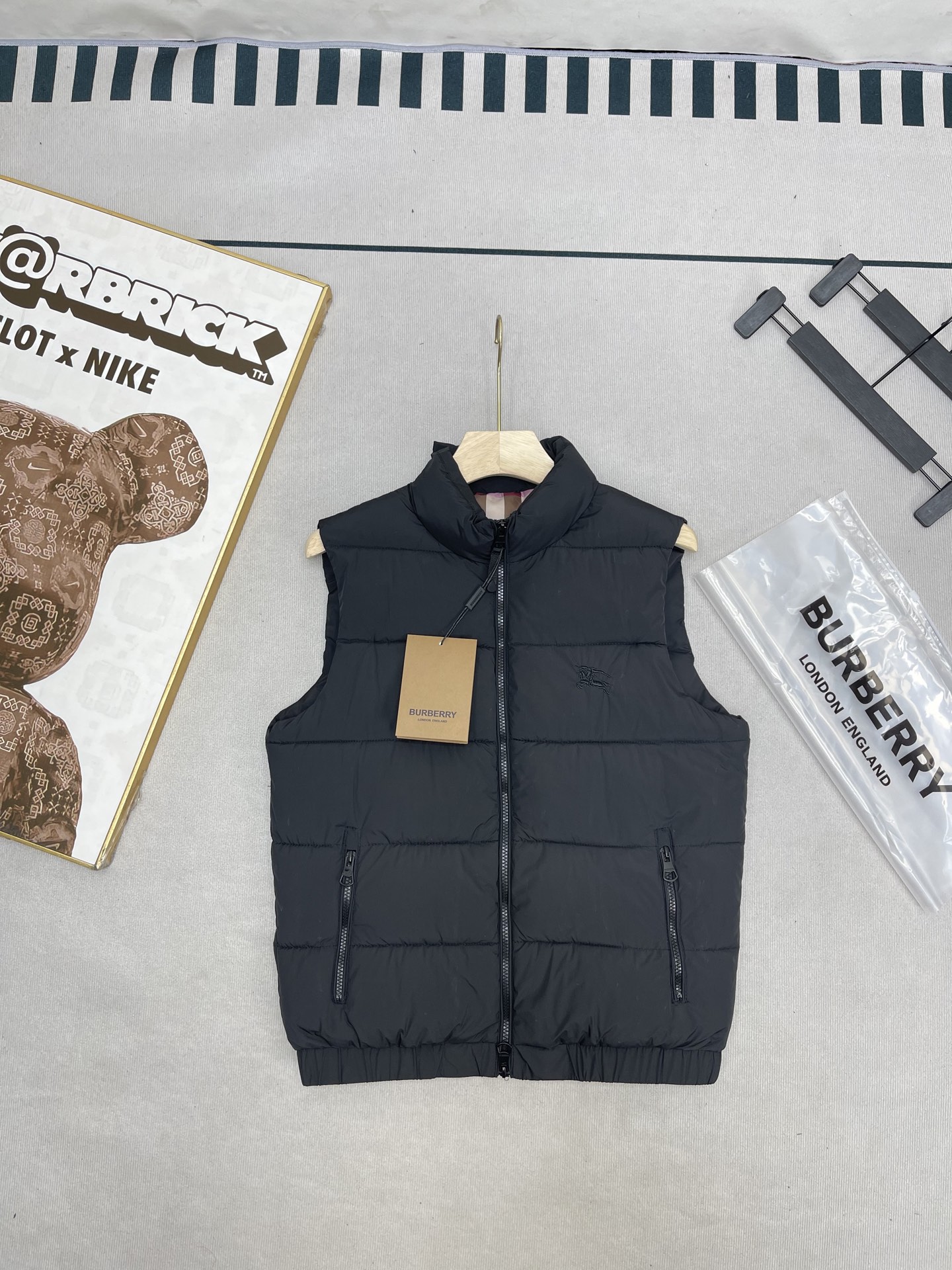 BURBERRY 巴宝莉 斜格纹刺绣战马羽绒棉立领马甲外套