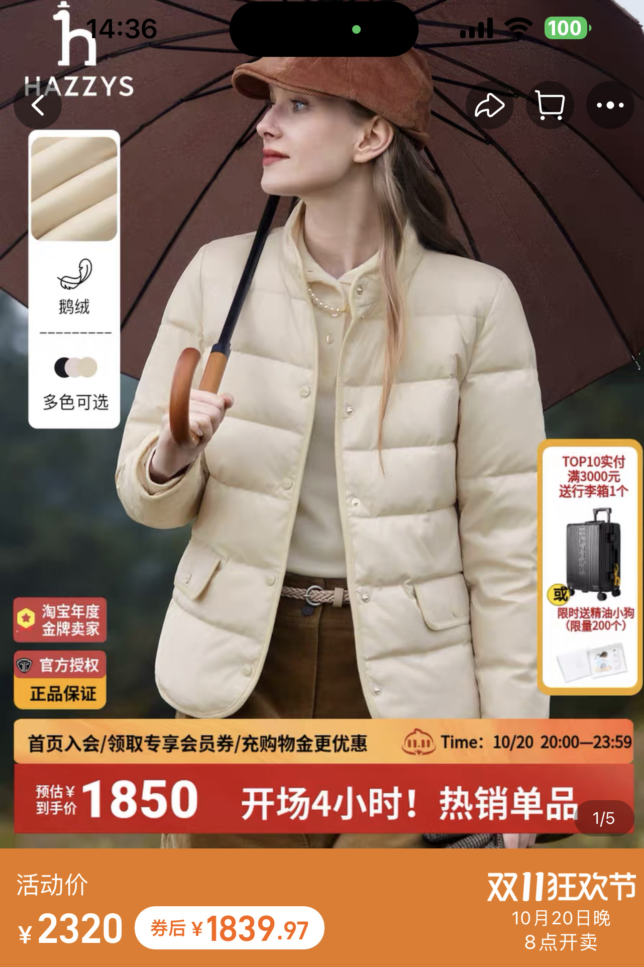 发 官网同步新款 Hazzys哈吉斯羽绒服女士轻薄秋冬鹅绒休 329752