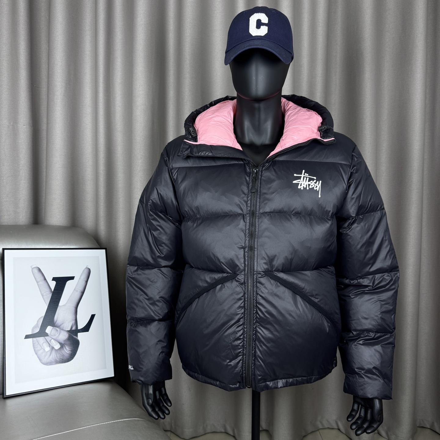 𝑺𝒕𝒖𝒔𝒔𝒚 斯图西纯色大口袋菱格薄款棉服黑八桌 329890