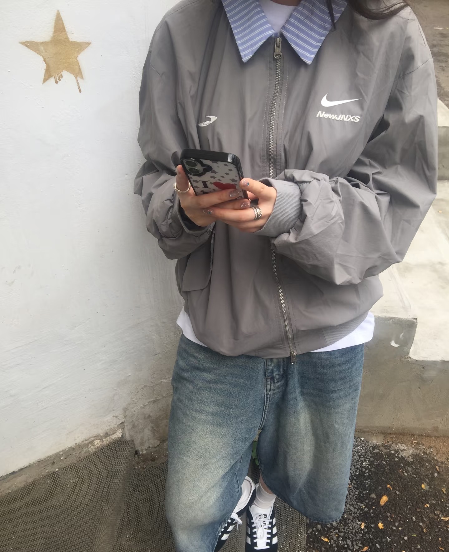 耐克Nike美式复古格纹翻领拼接外套男秋季假两件情侣款男女同 335750