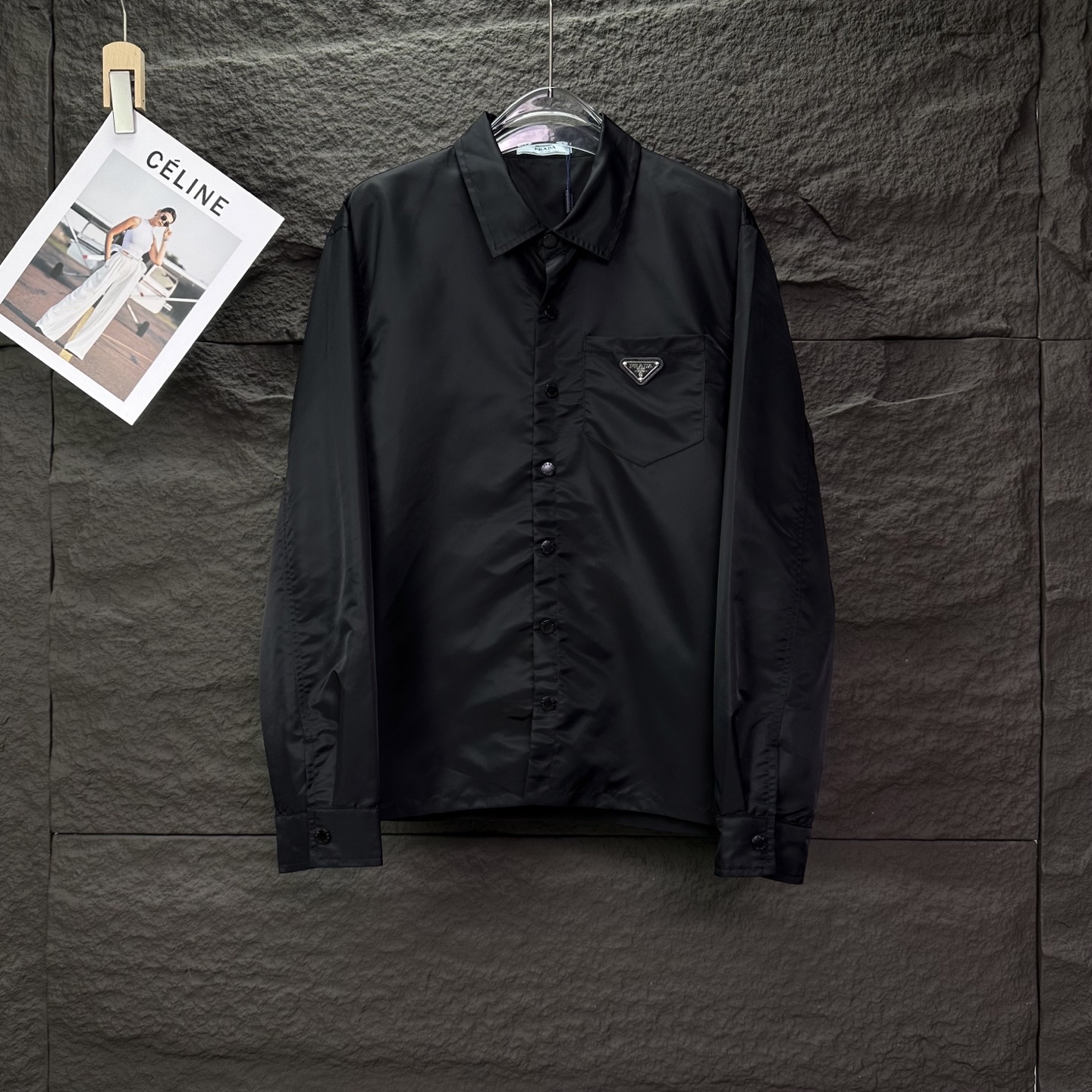 普拉达2025新款口袋金属三角徽章情侣款翻领外套