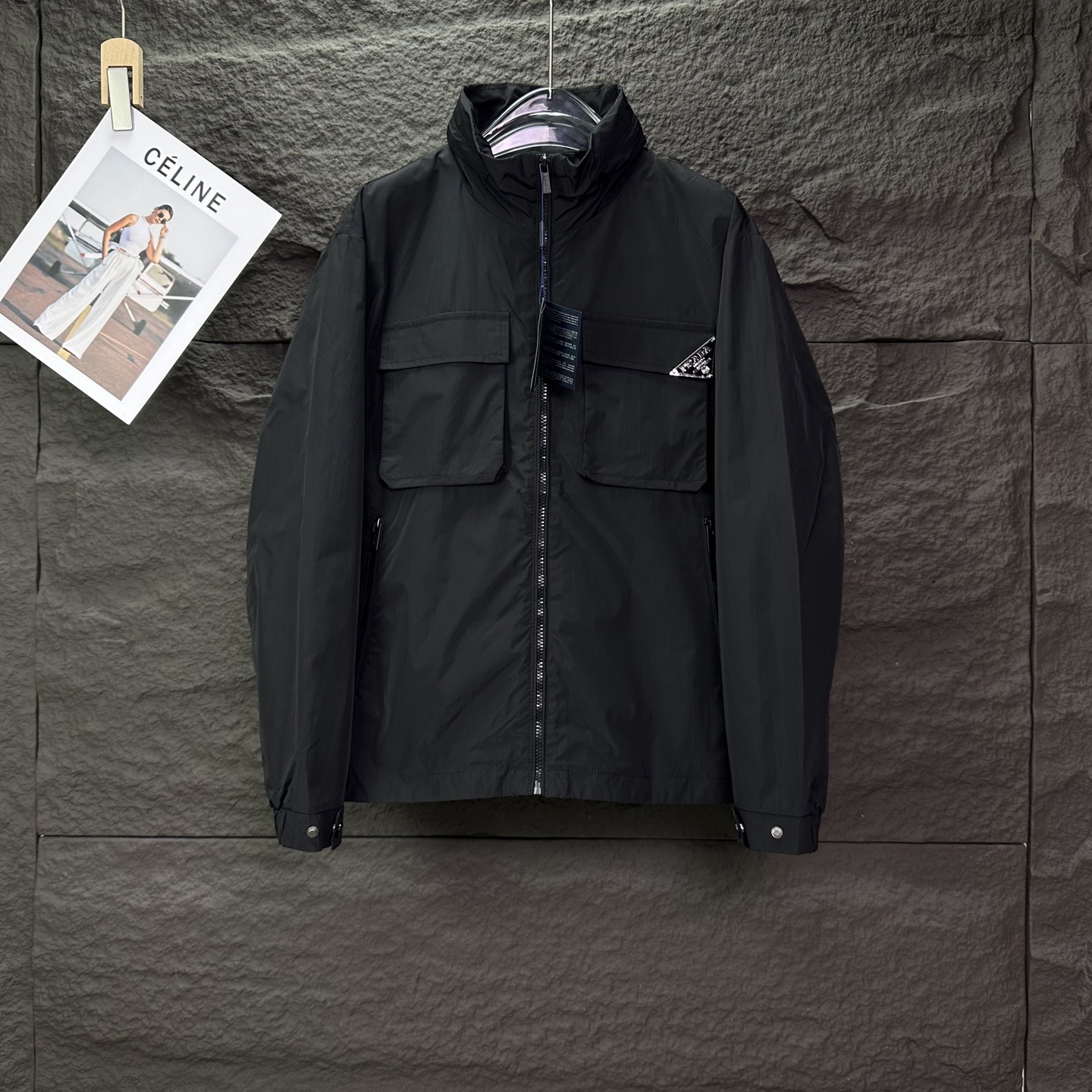 普拉达2025新款多口袋金属三角徽章情侣款翻领拉链外套