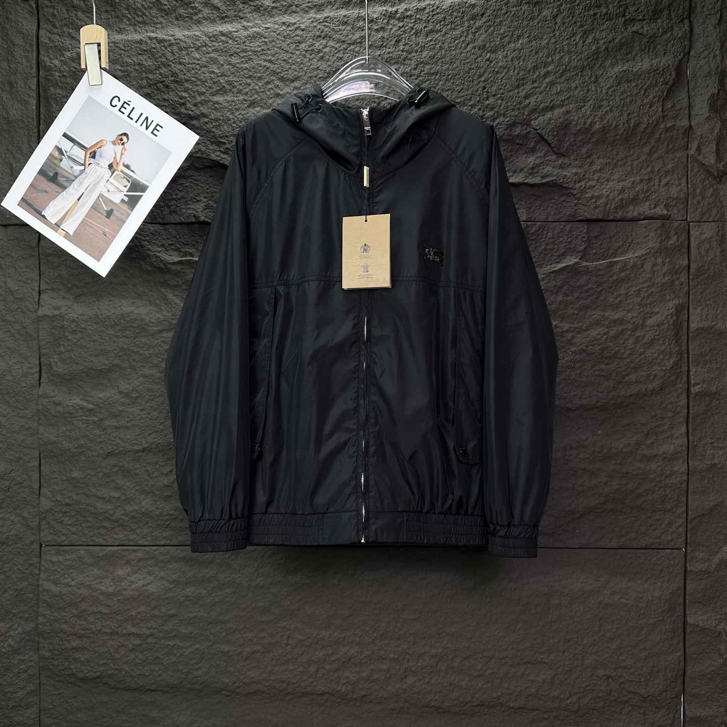 巴宝莉2025新款战马徽章后背拼接字母logo情侣款连帽拉链 337607