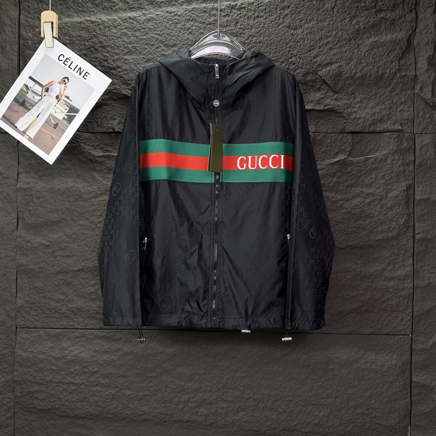 古驰2025新款刺绣红绿织带字母情侣款连帽拉链外套