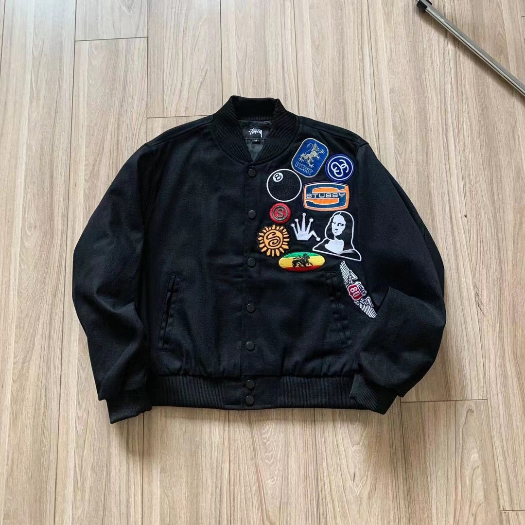 Stussy斯图西 水洗做旧黑8刺绣Logo夹克 354240