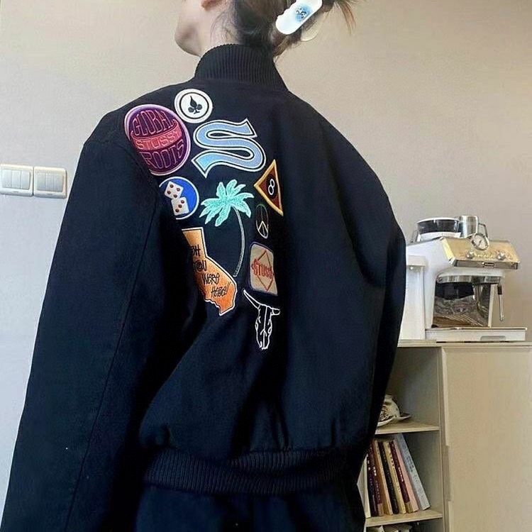Stussy斯图西 水洗做旧黑8刺绣Logo夹克 354241
