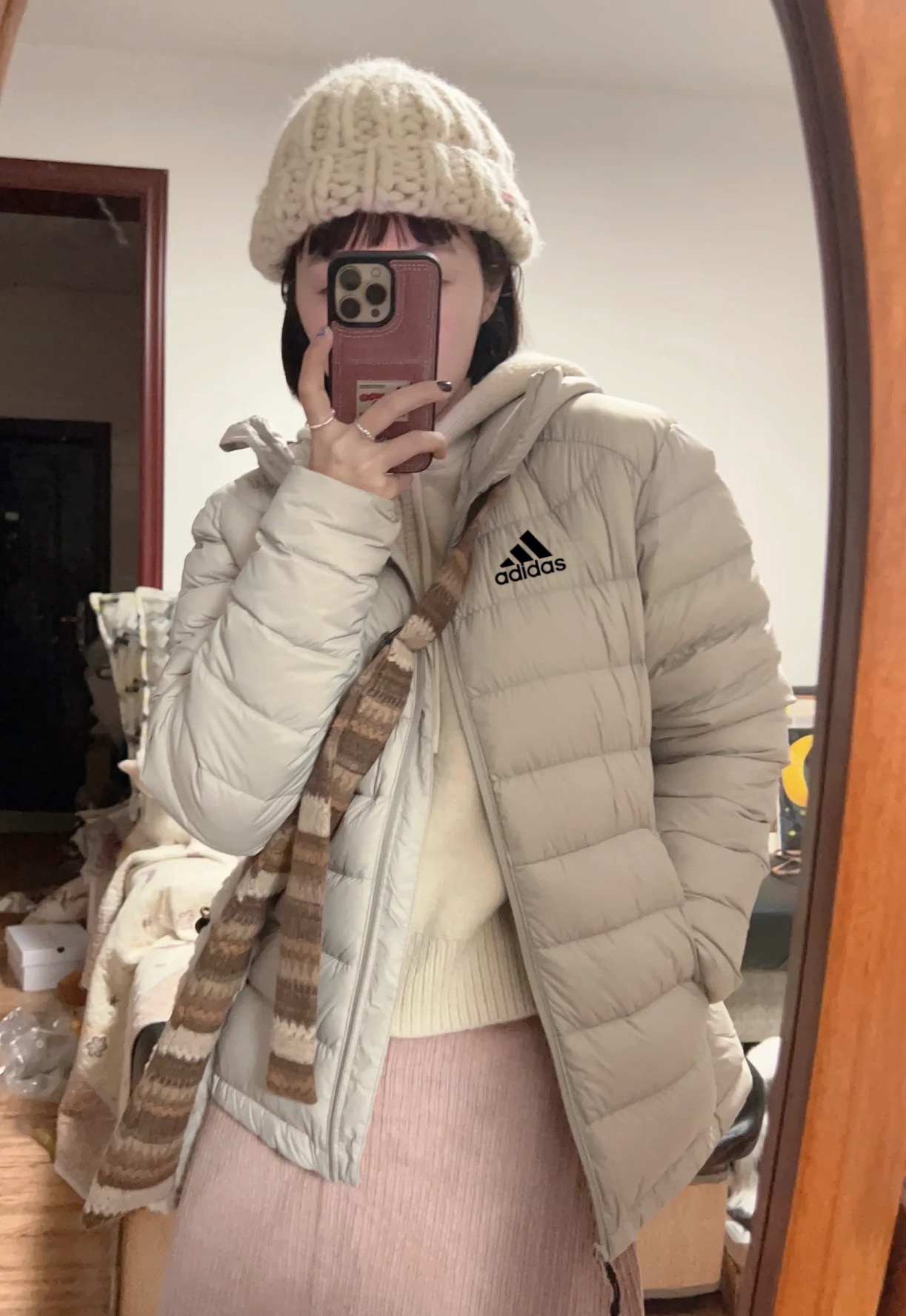 白鸭绒羽绒服阿迪达斯Adidas三叶草冬季羽绒服新款粉色针织 378349