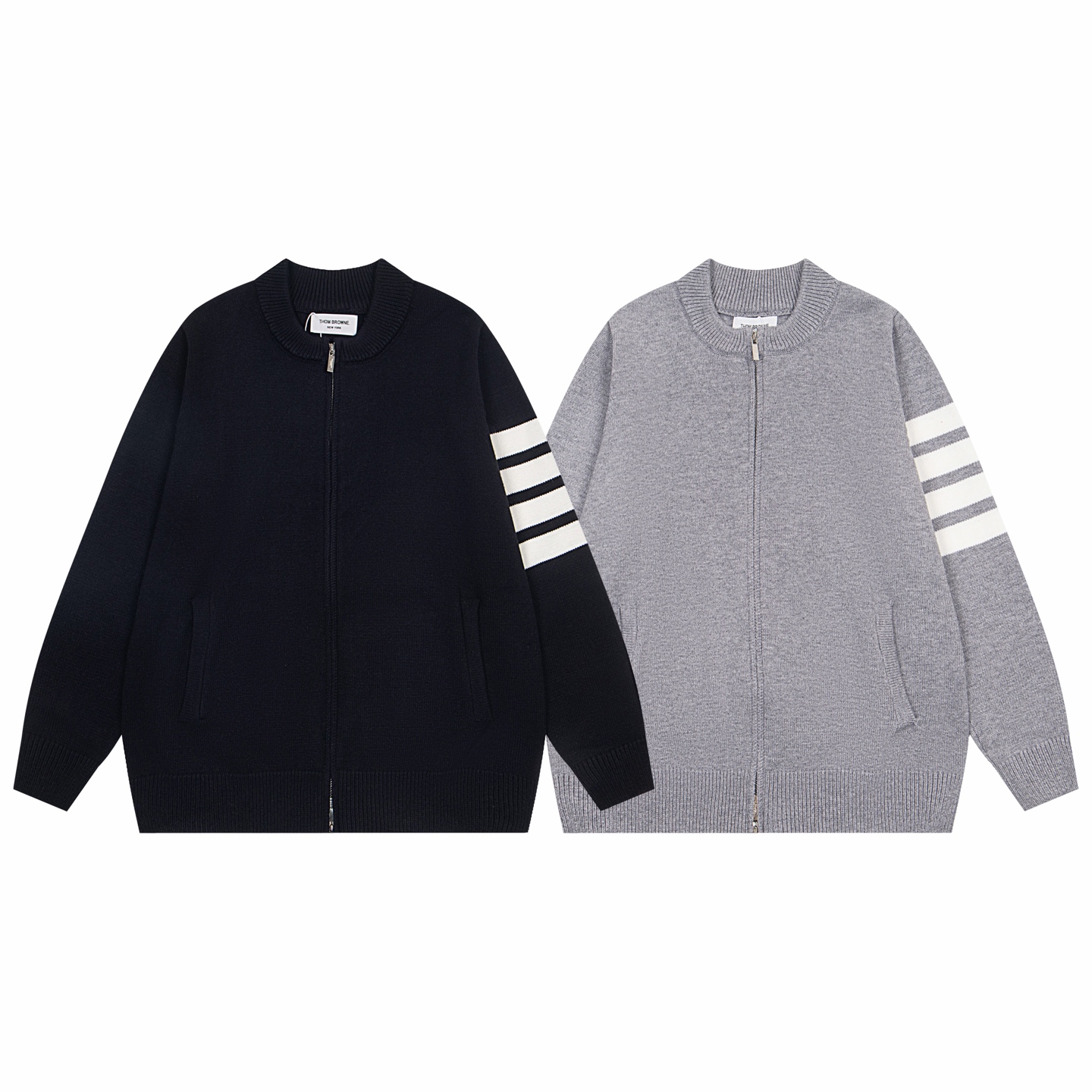 TB 汤姆布朗经典4条杠针织白金双拉链外套男