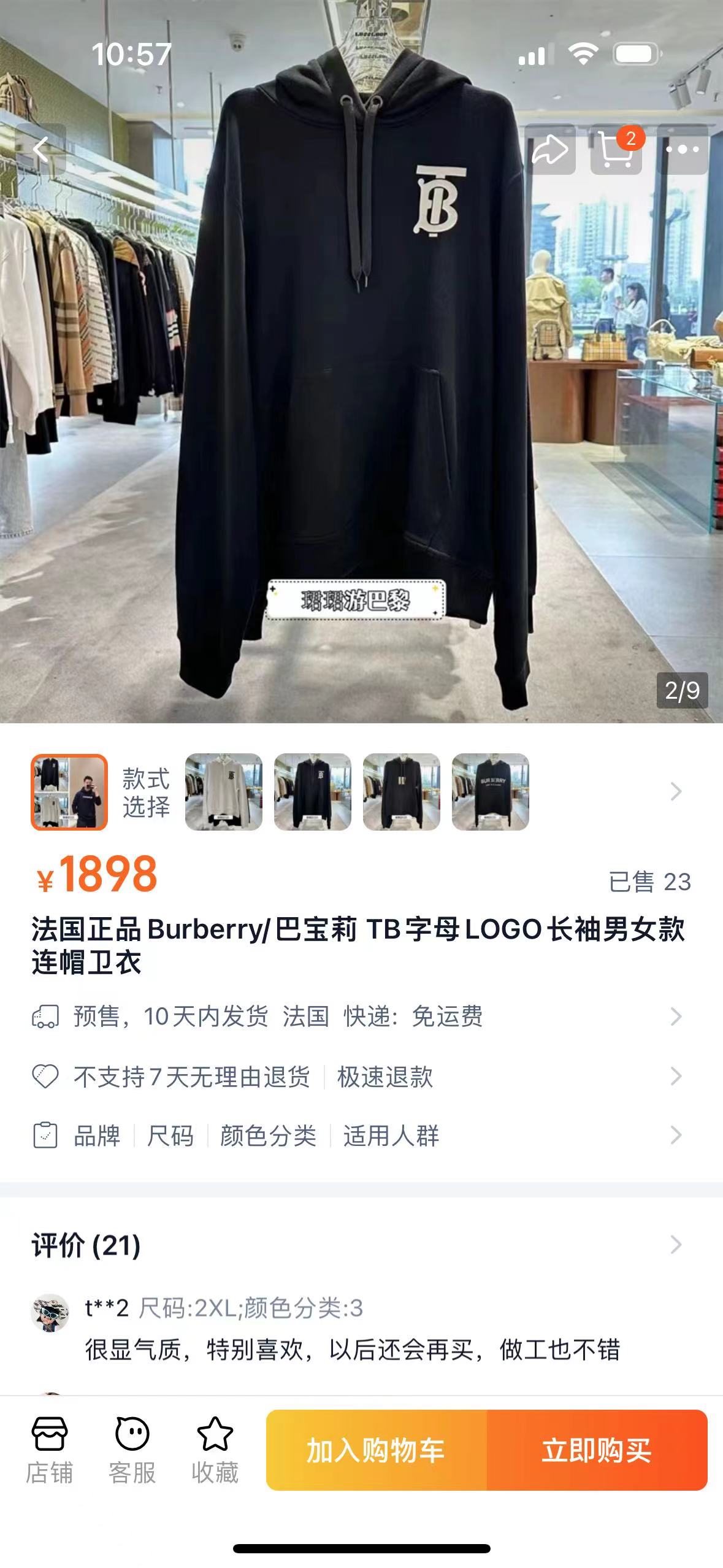 BURBERRY巴宝莉落肩连帽加绒卫衣