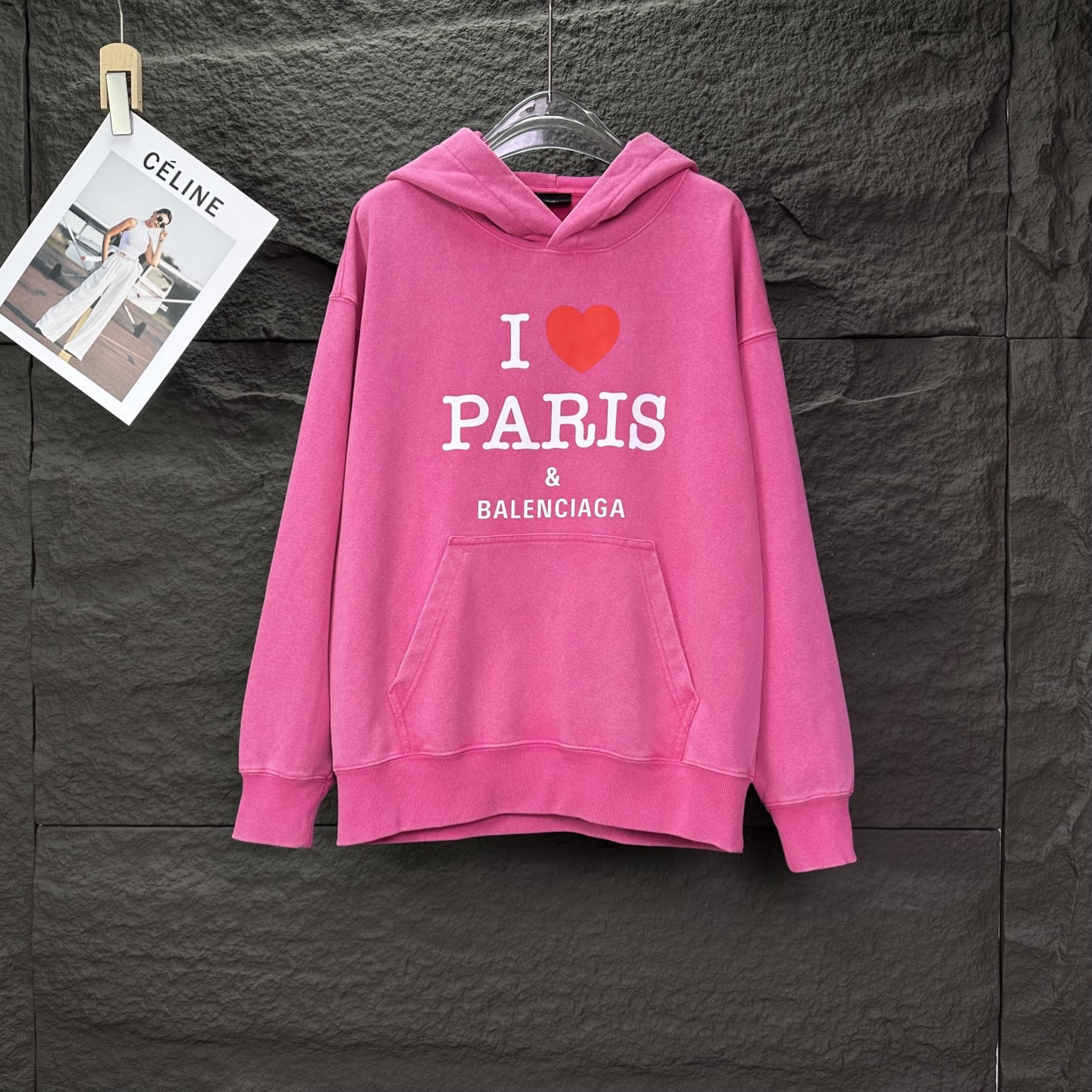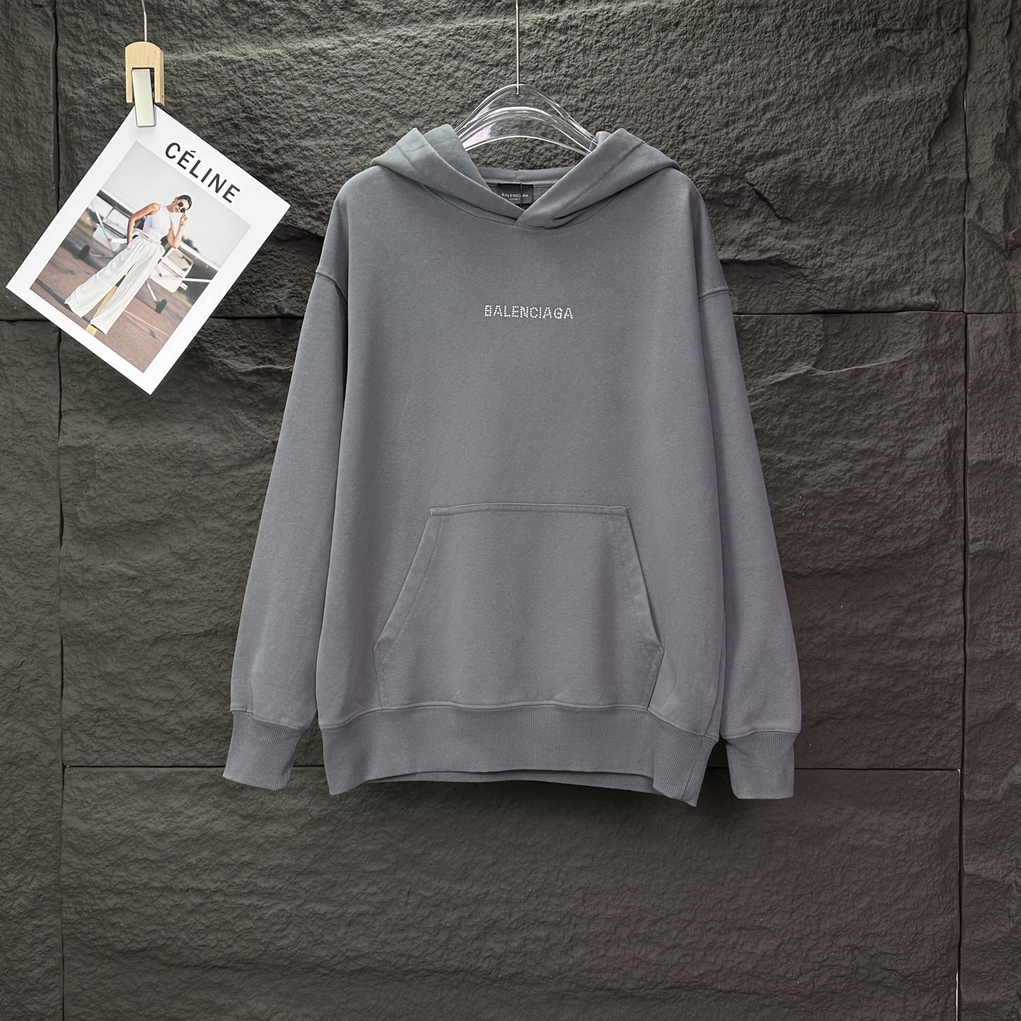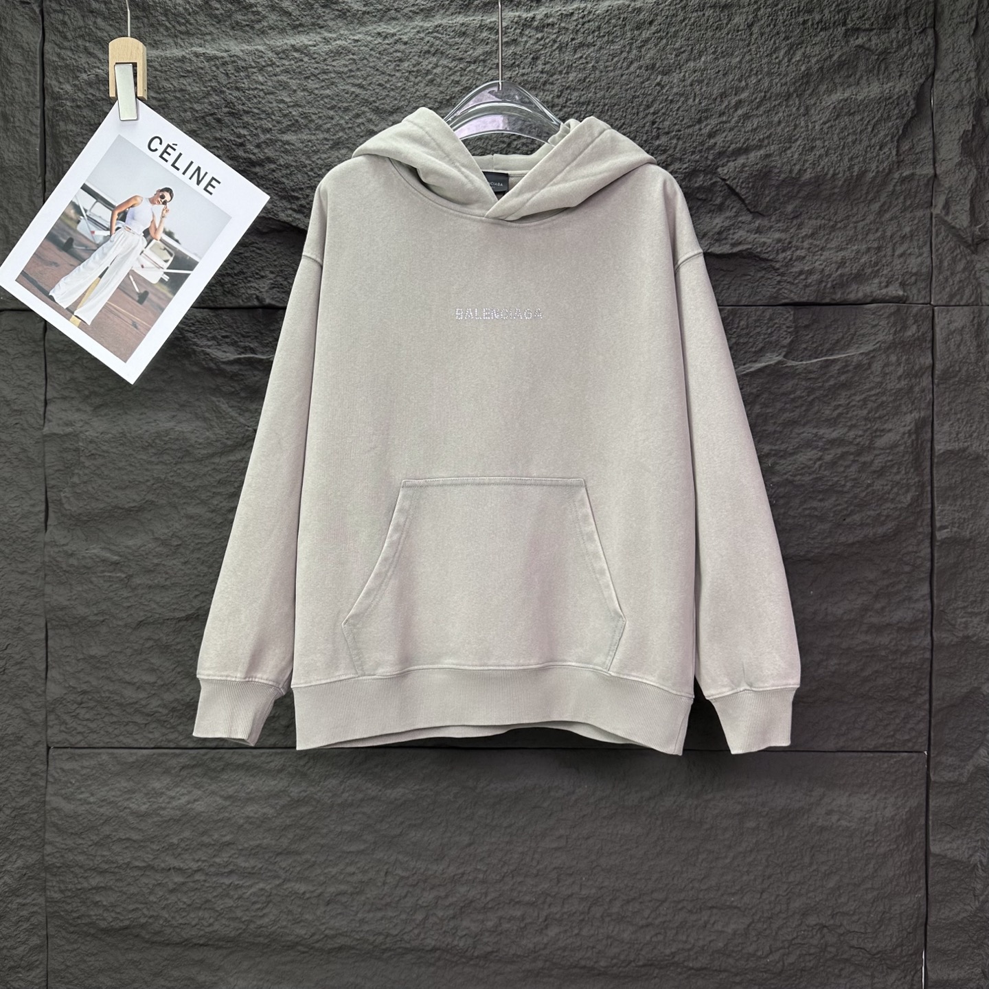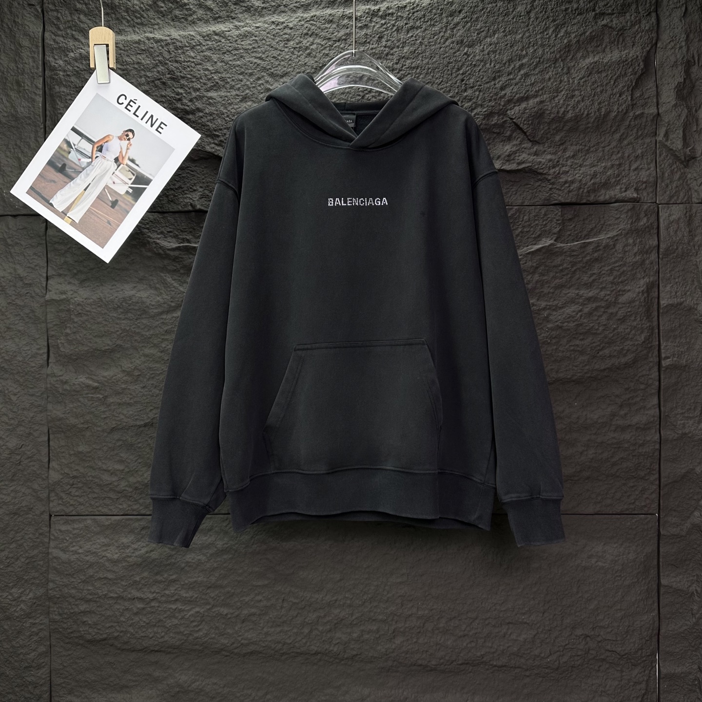 巴黎世家2025新款烫钻字母洗水做旧情侣款连帽卫衣