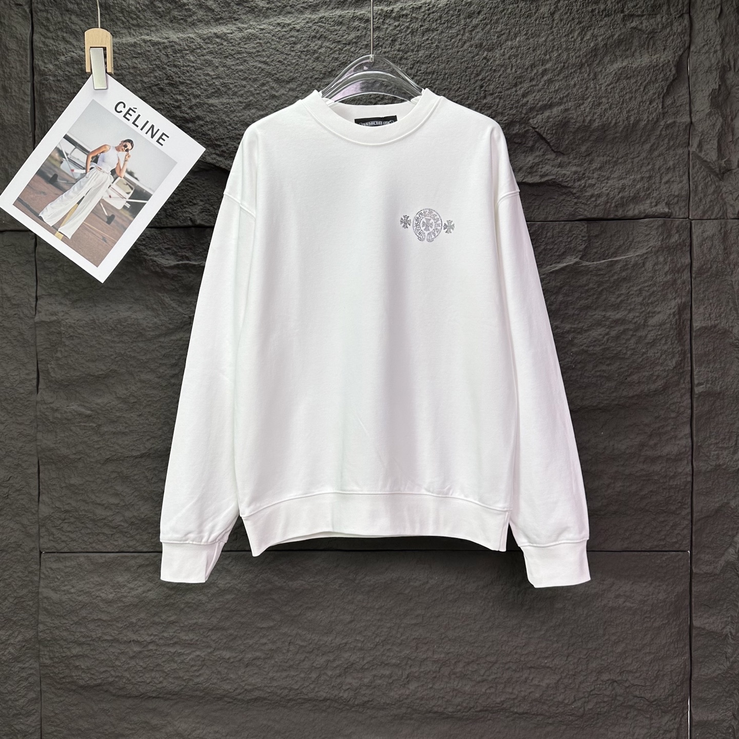 克罗心2025新款烫钻马蹄logo情侣款圆领卫衣