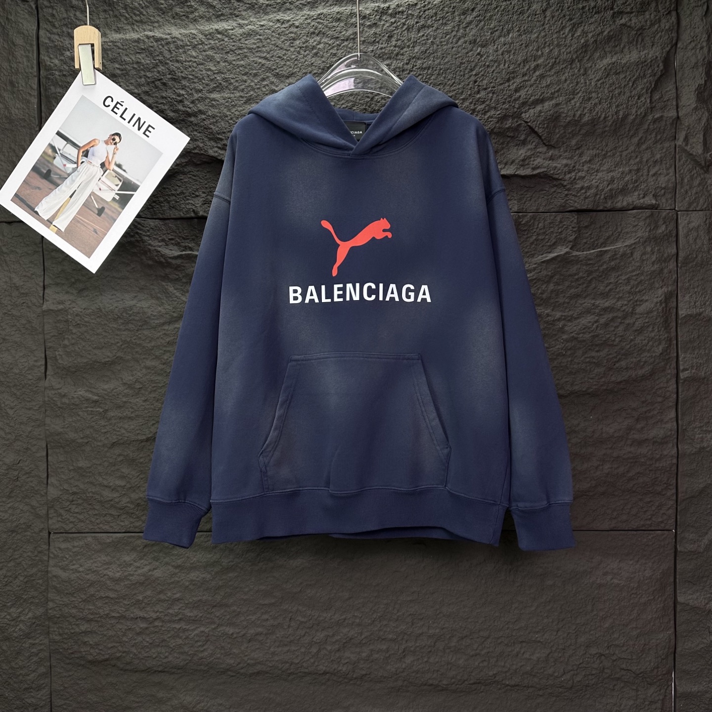 巴黎世家联名2025新款字母印花洗水做旧情侣款连帽卫衣
