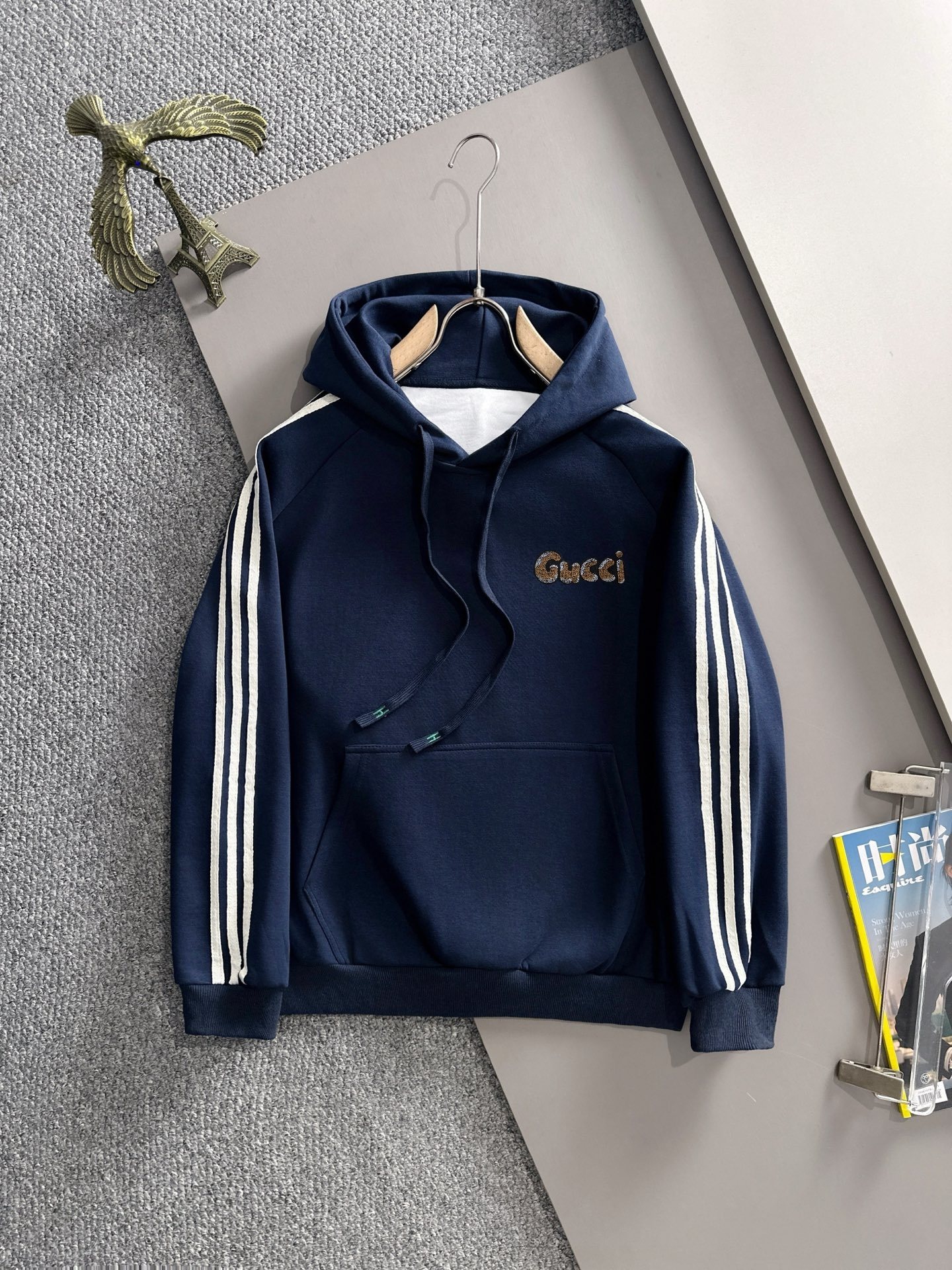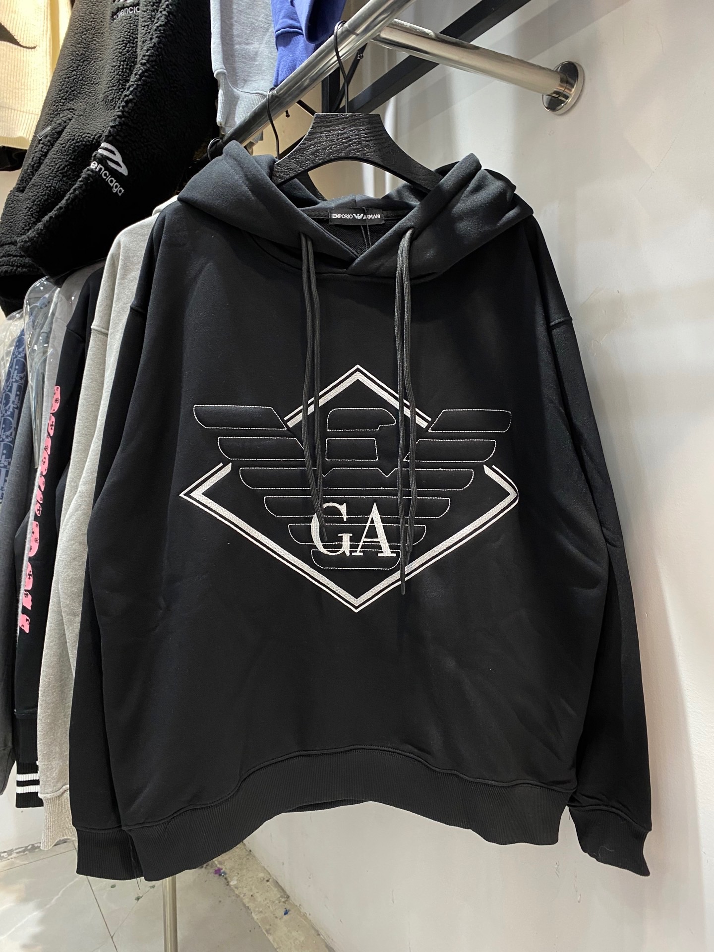 阿玛尼3D立体凹凸老鹰海绵绣花长袖连帽 579436