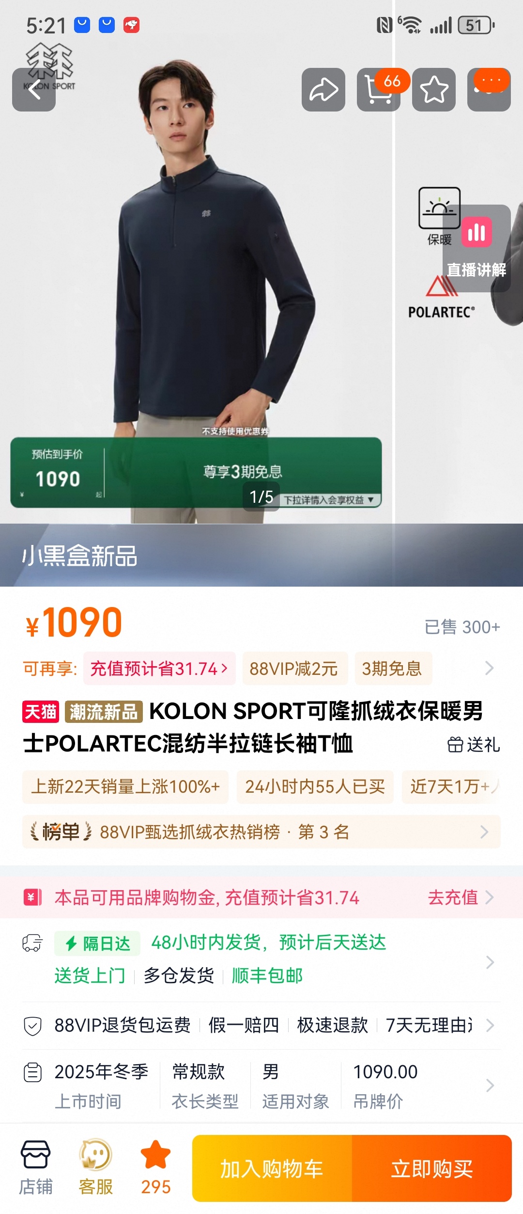 2025KOLON SPORT可隆抓绒衣保暖男士POLART 345750