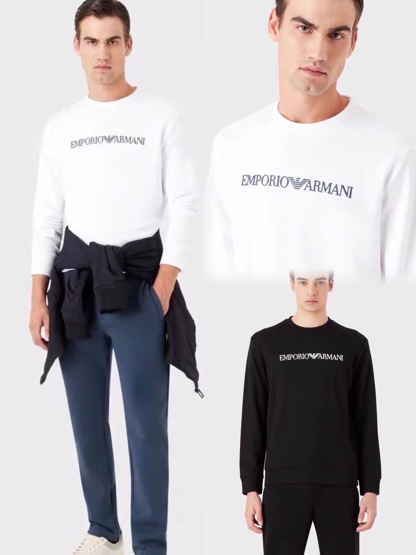 Arma i 阿玛尼 胸前字母logo胶印男女款加绒圆领卫衣 373186
