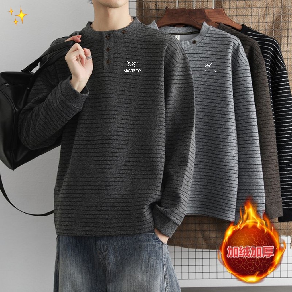 ARC TERYX始祖鸟秋冬美式老钱风艺术羊毛条纹圆领半开纽 372105