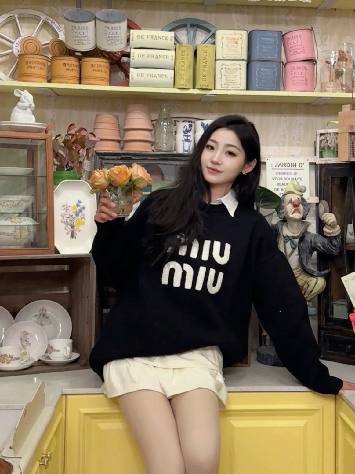 Miumiu缪缪家新款假两件翻领衬衫加绒卫衣