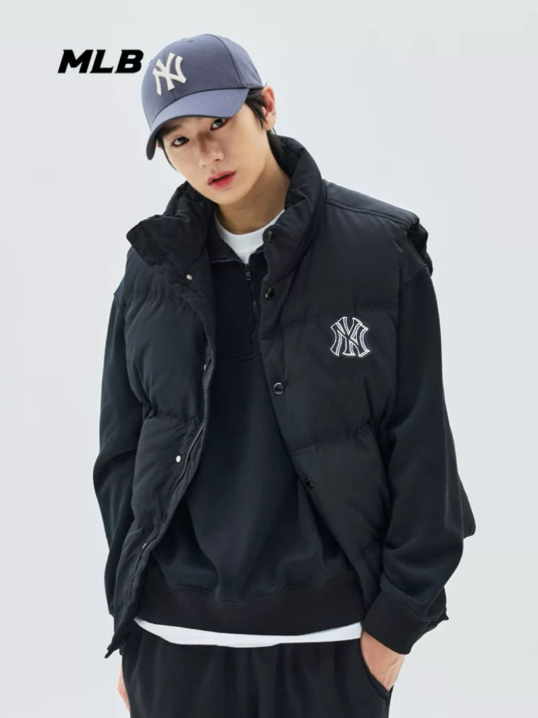 MLB Ny男女情侣羽绒马甲立领运动防风休闲宽 366385