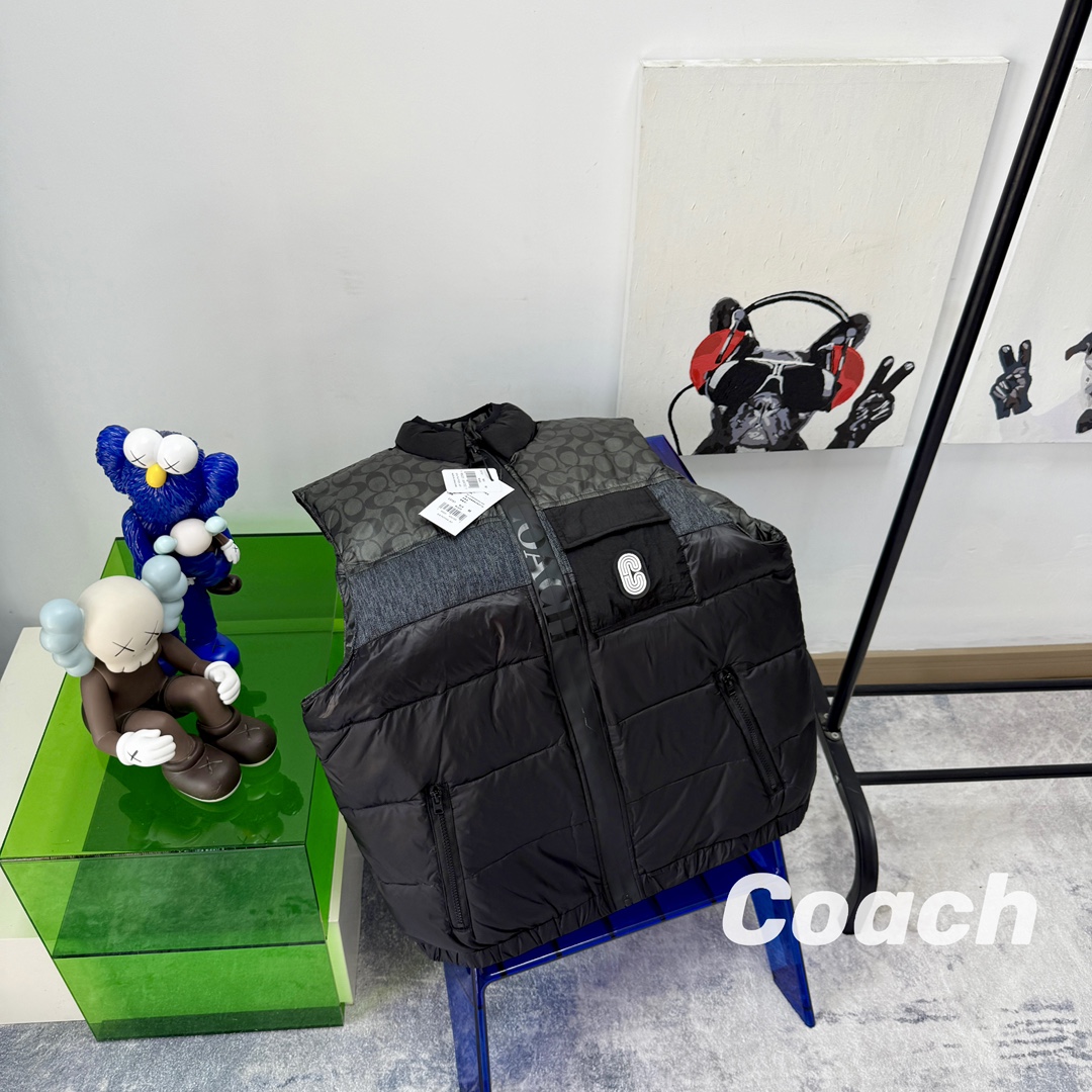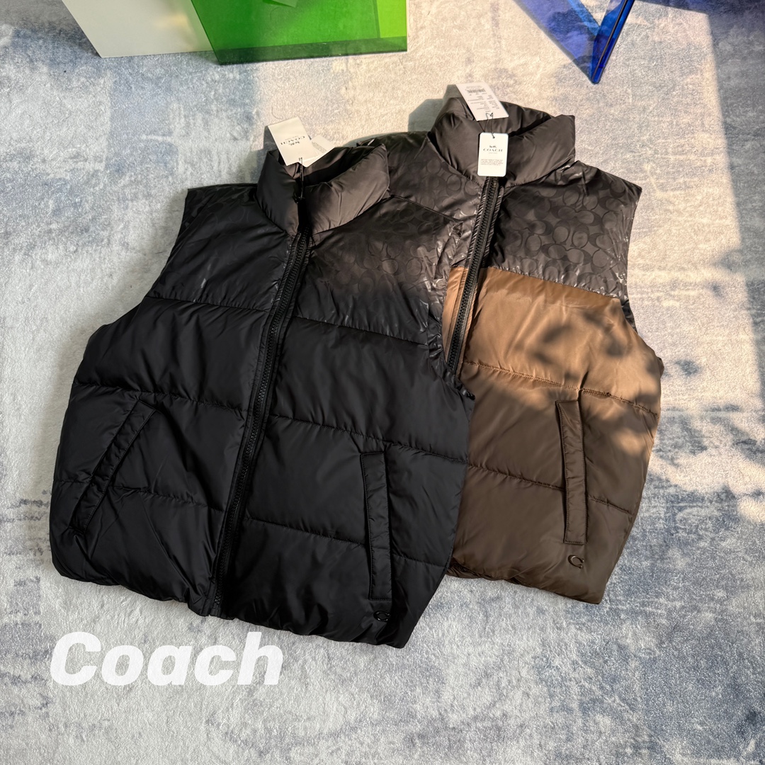 COACH蔻家男士经典黑色拼接老花C字拼接白鸭绒羽绒服马甲 361439