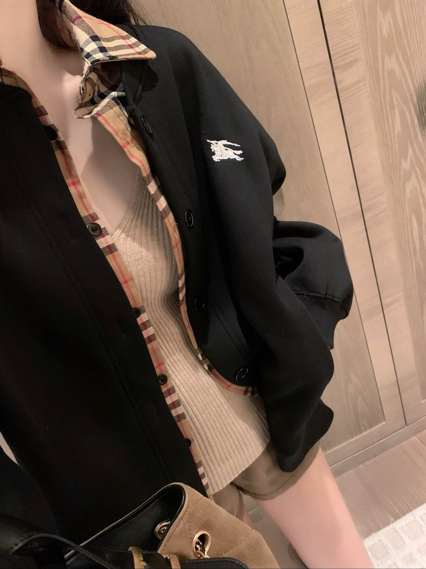 Burberry 巴宝莉BBR战马刺绣格子衬衫领加绒卫衣外套 360386